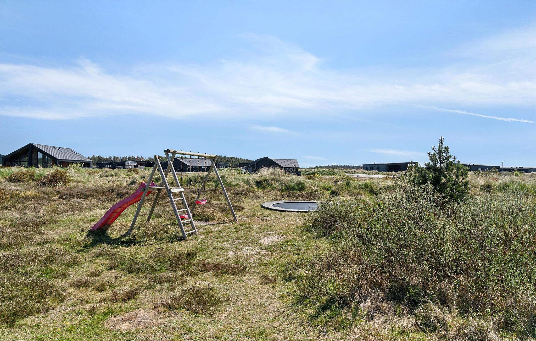 Dette helt unikke, luksus aktivitets- og swimmingpoolferiehus ligger i rolige omgivelser i det naturskønne område ved Vorupør i gåafstand til det brusende Vesterhav. Feriehuset er det helt ideele valg til Jer, der gerne vil have en aktiv ferie og er mange personer, da her ikke er mindre end 18 sovepladser. Der er otte soveværelser, de seks med en dobbeltseng og de sidste to er lavet som familierum med både en dobbeltseng, en enkeltseng og fin plads til en barneseng. Soveværelserne er delt op i fire afdelinger med hver en lille gang, to soveværelser og et badeværelse med bruser. Der er en dejlig stue med komfortable møbler, et stort fladskærms-tv og hvor ovenlysvinduet sørger for et rigtig godt lysindfald. Fra stuen er der adgang til husets wellnessafdeling med swimmingpool, sauna og udgang til en overdækket udebruser samt et udendørs seks personers standvandsspabad. Herfra har I en dejlig udsigt til husets shelter og trampolin samt over området.