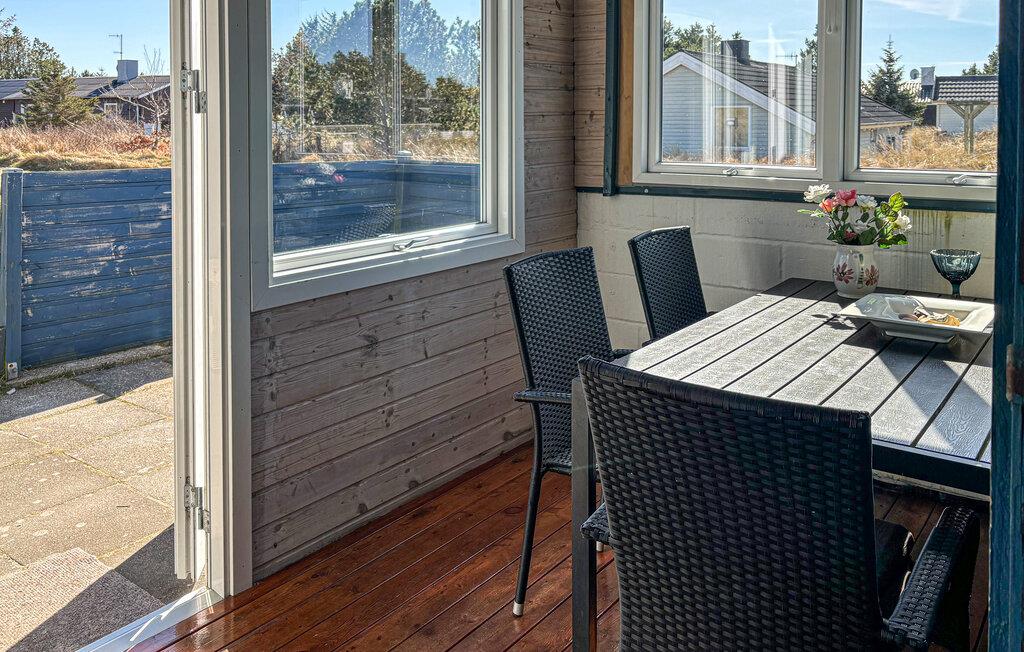 Glæd jer til den hyggelige atmosfære og enkle men praktiske indretning i dette sommerhus på den jyske vestkyst. Gør en dejlig morgenmad klar i det åbne køkken og læg nogle planer for dagen rundt om spisebordet i den tilstødende stue. Gør jer godt tilpas i sofaen, eller lad brændeovnens stille knitren varme stuen op på de kølige aftener. Vil I gøre noget ekstra godt for jer selv, har I jeres egen lille sauna, hvor I kan slappe af og få varmen efter en lang dag i den friske luft.