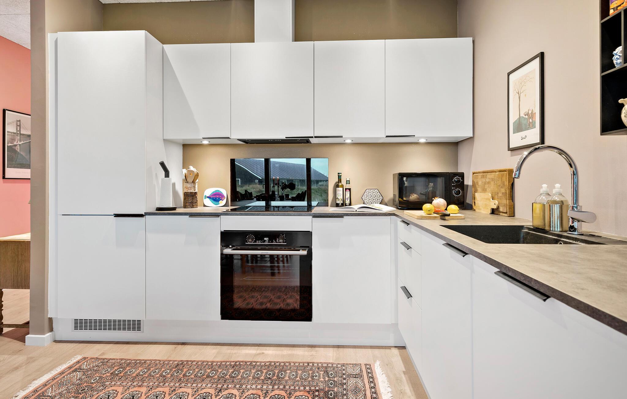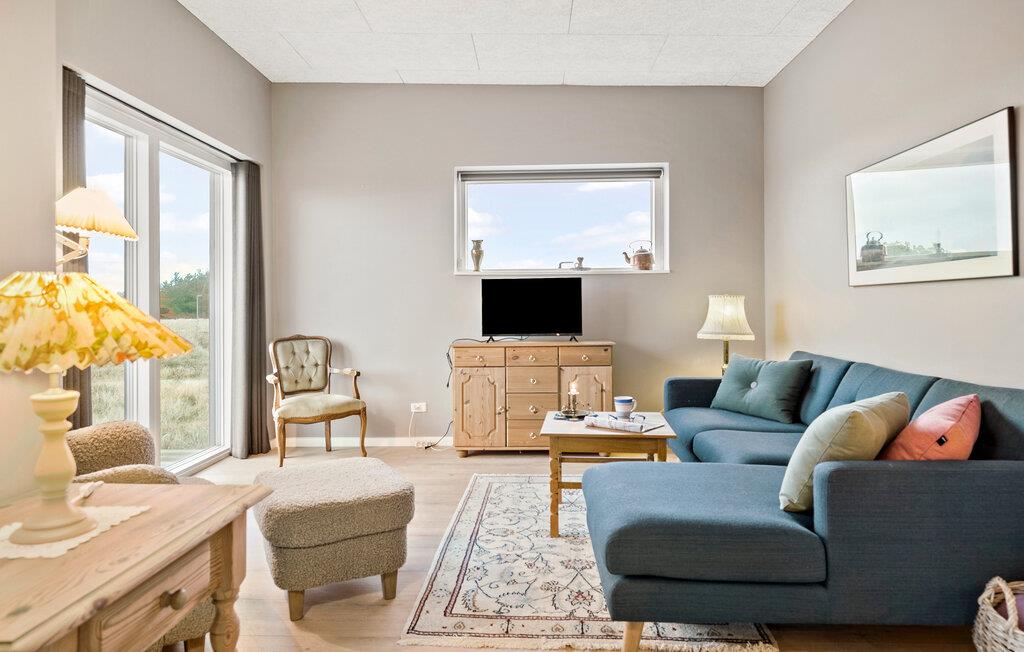 Beliggende i det idylliske klitlandskab venter dette komfortabelt indrettede feriehus på jer. Sluk fra hverdagen i den behageligt varme atmosfære og fordyb jer i en bog, mens I lytter til vinden. Fremtryll lækkerier i det moderne køkken, gør jer godt tilpas med en filmaften i stuen eller brug tid sammen med at spille et brætspil.