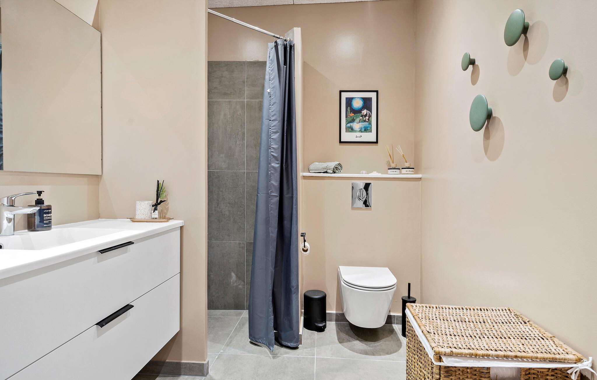 Badeværelse (nr. 1) - WC. Varmt og koldt vand. Bruser