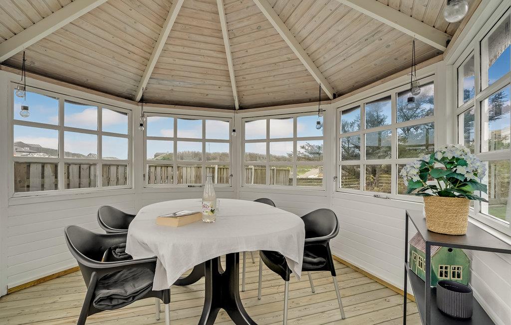 Her har I fundet det ideelle sommerhus for en familie, der gerne vil tilbringe tid i et rummeligt, komfortabelt og lyst hus. Det lyse interiør har alt hvad I behøver for et afslappende ophold. Føl jer godt tilpas i sofaerne, foran tv'et med en knitrende ild i pejsen, spil kort ved spisebordet eller sving grydeskeerne i det store køkken. I kan også trække jer tilbage til det lille udhus og læse en god bog i en rolig atmosfære. Glæd jer til at indtage jeres feriemåltider på den smukke, solrige terrasse og afslutte aftenen der.