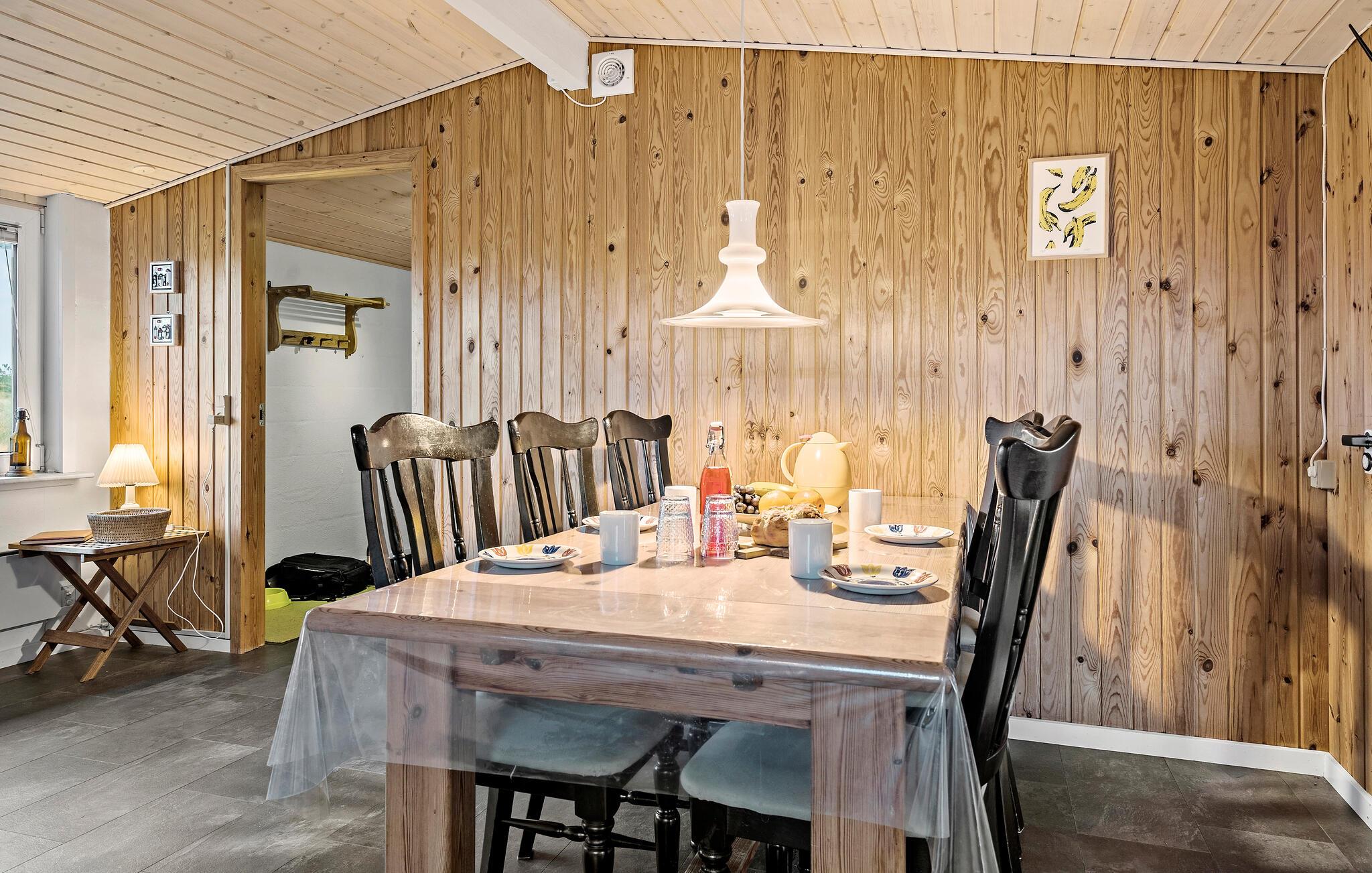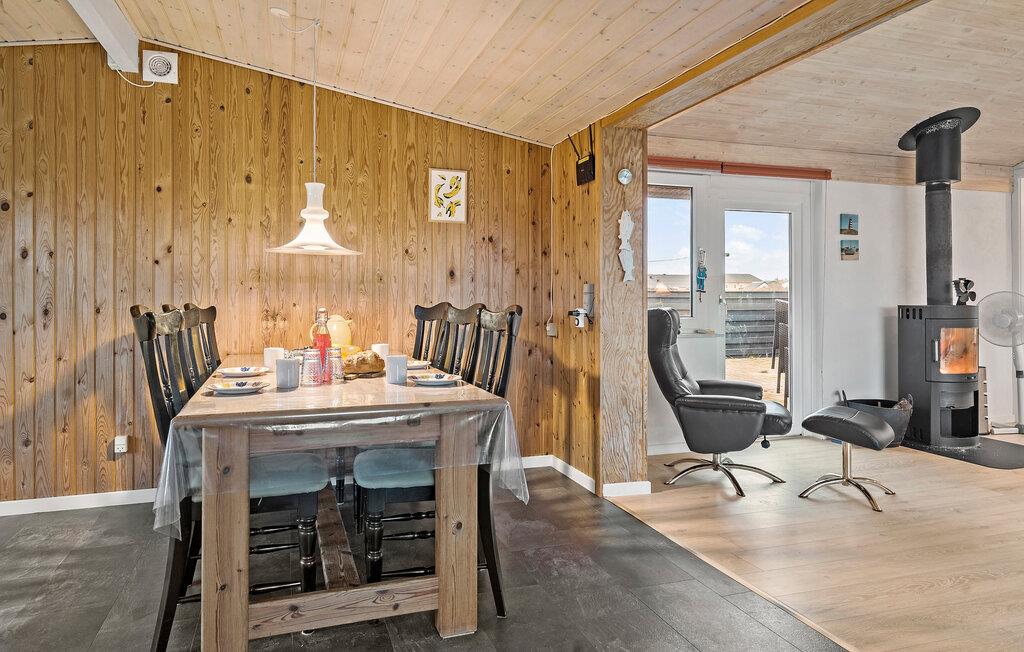 Dette klassiske sommerhus på Vorupør Strand lægger op til afslappende dage med sin hyggelige indretning og knitrende brændeovn. De lyse rum skaber en venlig atmosfære, hvor I straks føler jer hjemme. Et højdepunkt er den privatlivsbeskyttede terrasse, som ligger perfekt indlejret i klitterne - her kan I nyde den friske havluft, slappe af i solen eller afslutte dagen med en grillaften. Et ideelt sted at flygte fra hverdagen og nyde naturen.