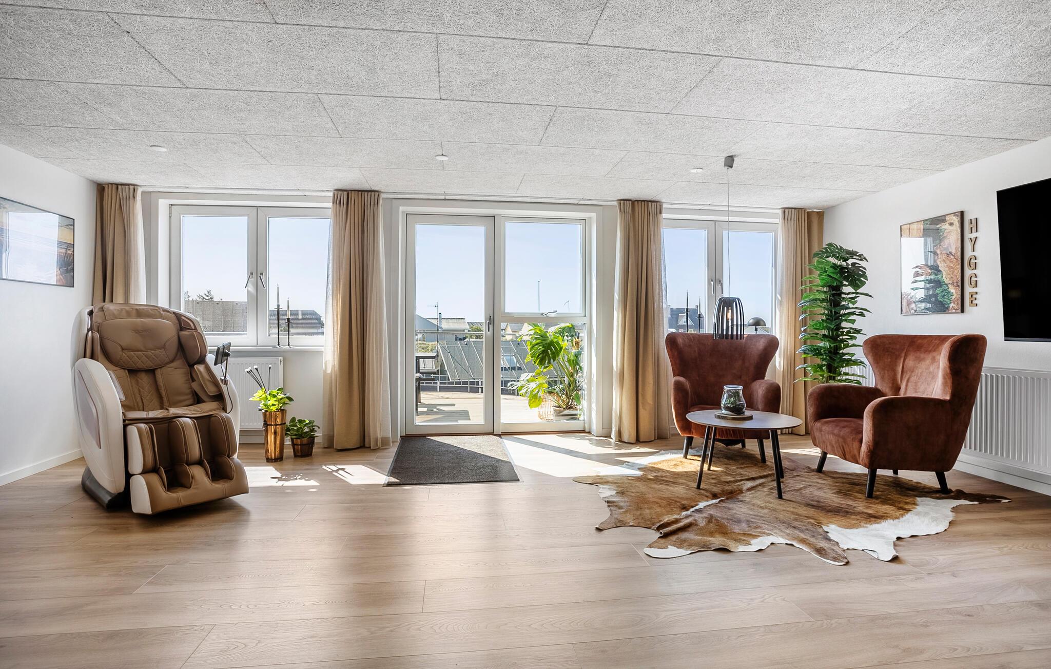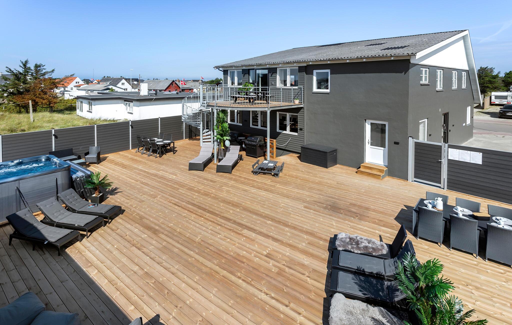 Rummeligt feriehus i Vorupør med wellness, sauna, aktivitetsrum og havudsigt tæt på stranden.