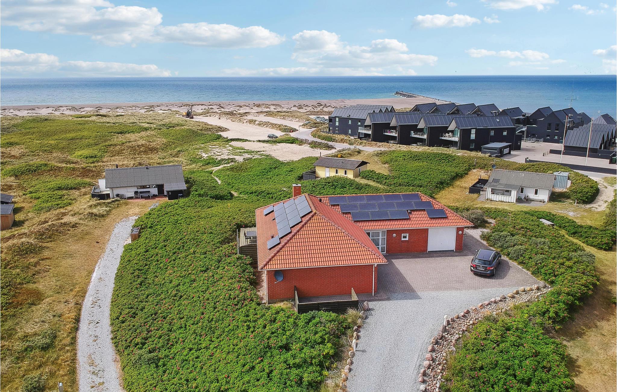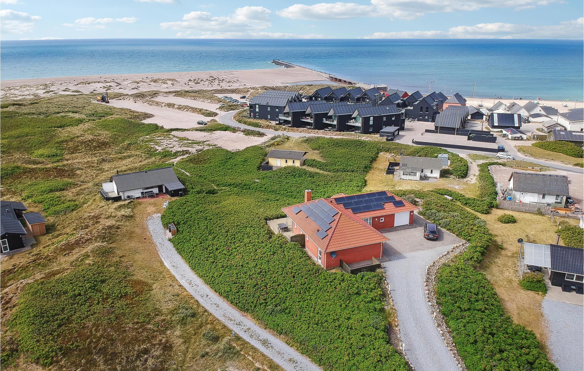 I får en helt særlig og uforglemmelig placering i dette dejlige murstenshus, som har en høj beliggenhed med fantastisk udsigt og kun nogle få skridt ned til vandet. Der er et skønt lys og en meget rolig atmosfære i huset, som ligger omkranset af et smukt kystlandskab, så I kan nyde dagens måltider med udsigt til klitter og hybenbuske. Fyld dagene med friske gåture ved vandet og i naturen og vend hjem til det hyggelige hus, hvor I kan få varmen i saunaen eller spabadet. Sæt jer derefter til rette med en god bog eller et brætspil i stuen og tilbring en stille stund, mens ilden blusser stemningsfuldt i brændeovnen.