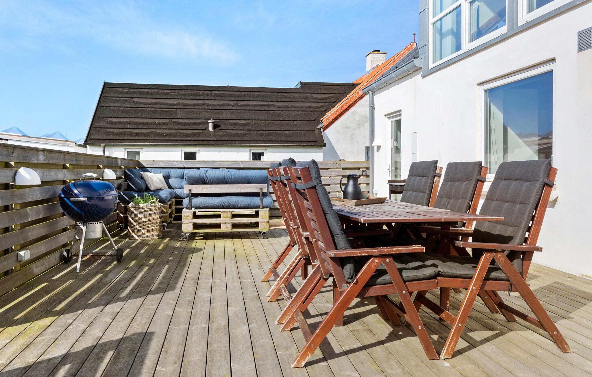 På de varme dage kan I trække ud på terrassen, der er rummelig og løber om flere sider af huset. Nyd den friske luft, nyd en god kop kaffe og lad børnene løbe rundt og lege i haven. Senere kan I fyre op i grillen og runde en smuk sommerdag af med saftige bøffer og grillspyd under den lune sommersol.
