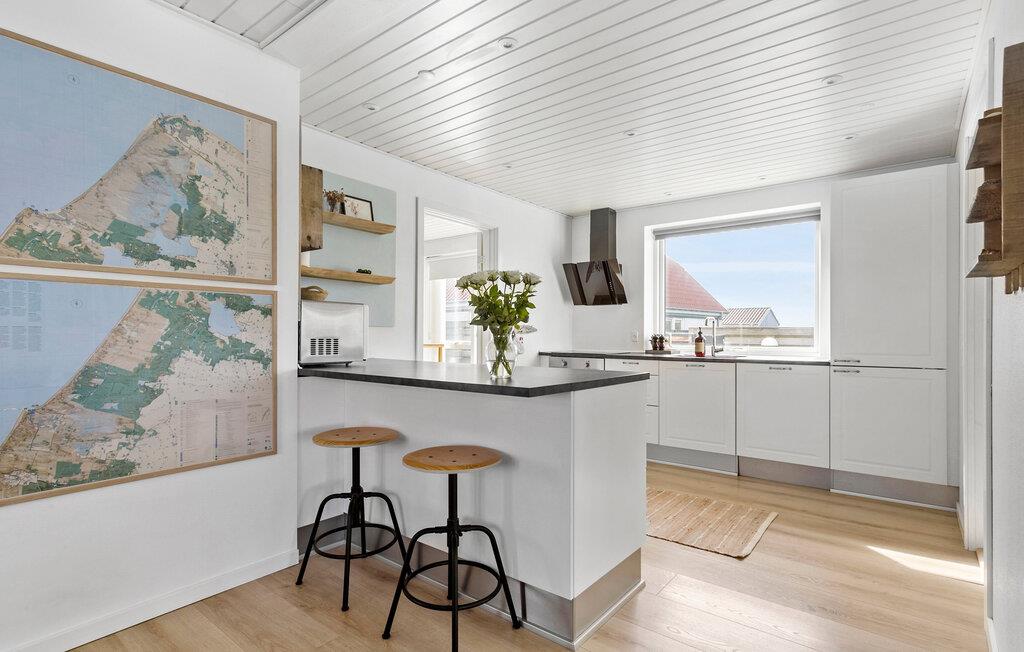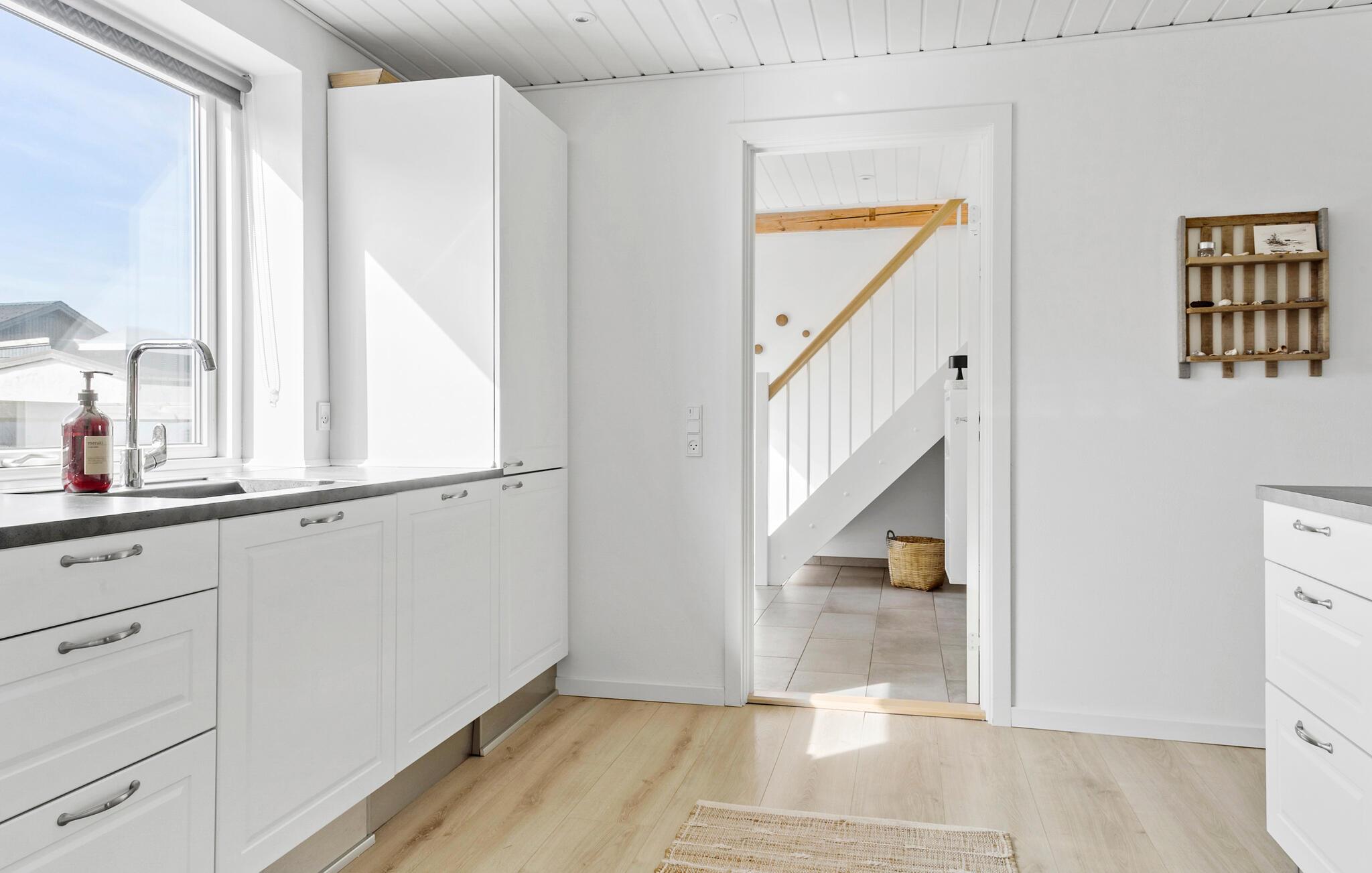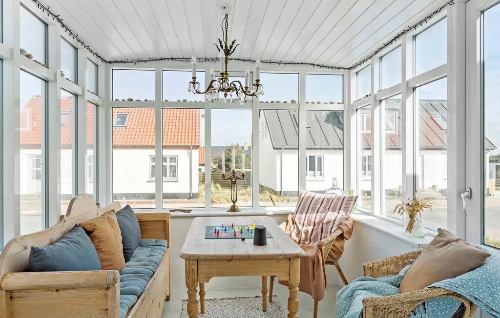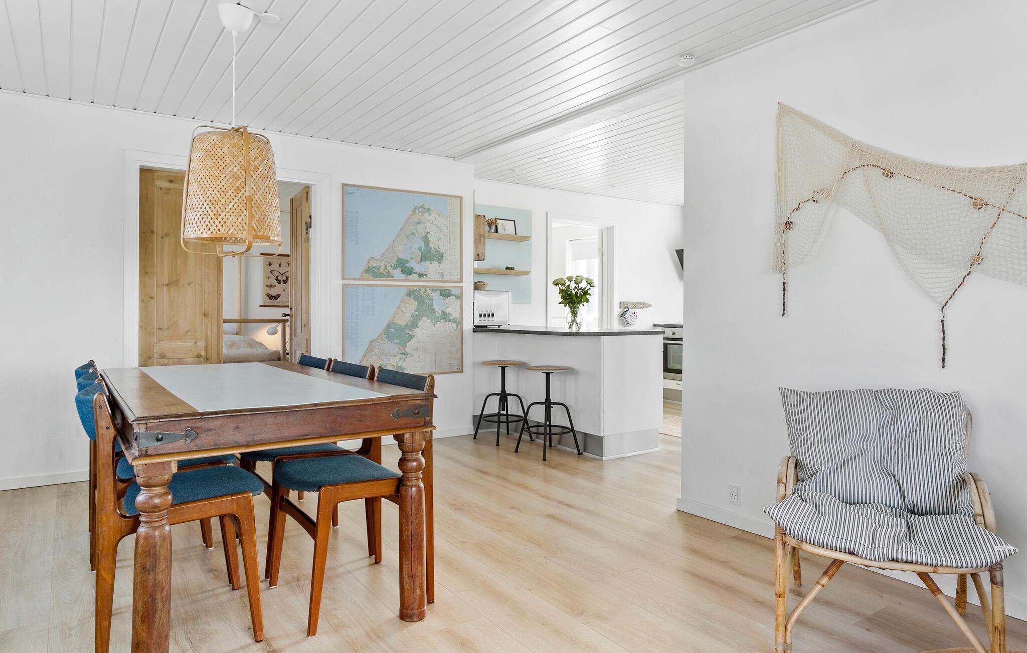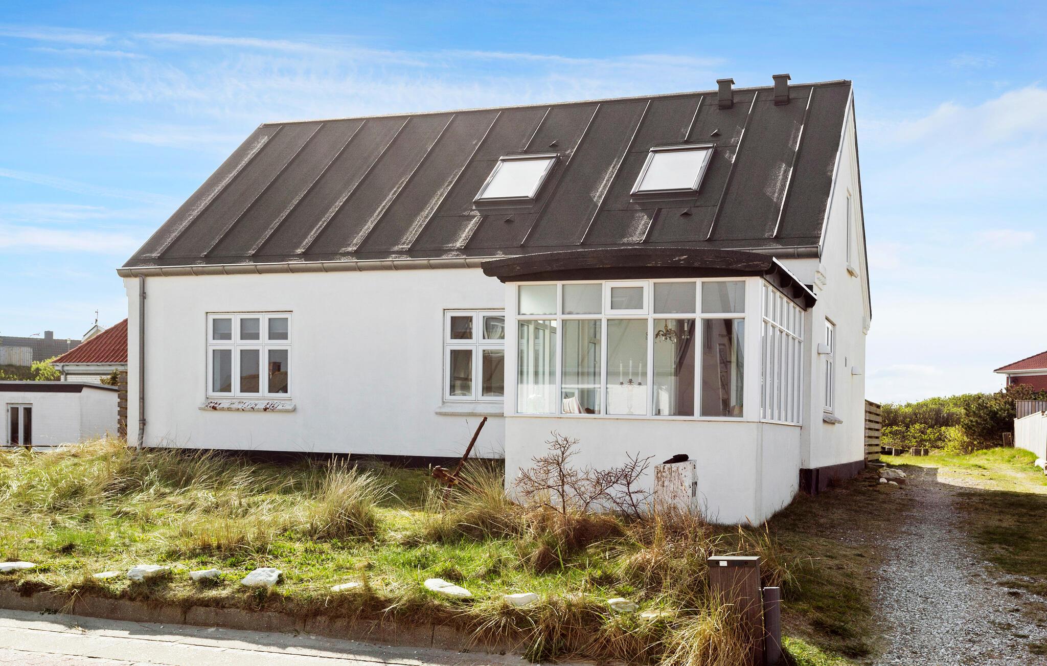 Tag familien under armen og rejs til det vestlige Jylland, hvor der venter jer et vidunderligt indhold i dette rummelige hus. Huset ligger kun få minutters gang fra Vesterhavet, og indvendigt fremtræder det yderst flot over to etager med gode indretningsløsninger, komfortable møbler og store vinduespartier, der særligt fra første sal giver en helt fantastisk udsigt. Lad familiens kokke kræse om livretterne i det moderne køkken og dæk op til den store middag ved spisebordet. Efter aftensmaden kan I hive brætspillene frem eller rykke over i sofaen med snacks og en god film på tv'et, mens I lægger planer for de kommende dage.