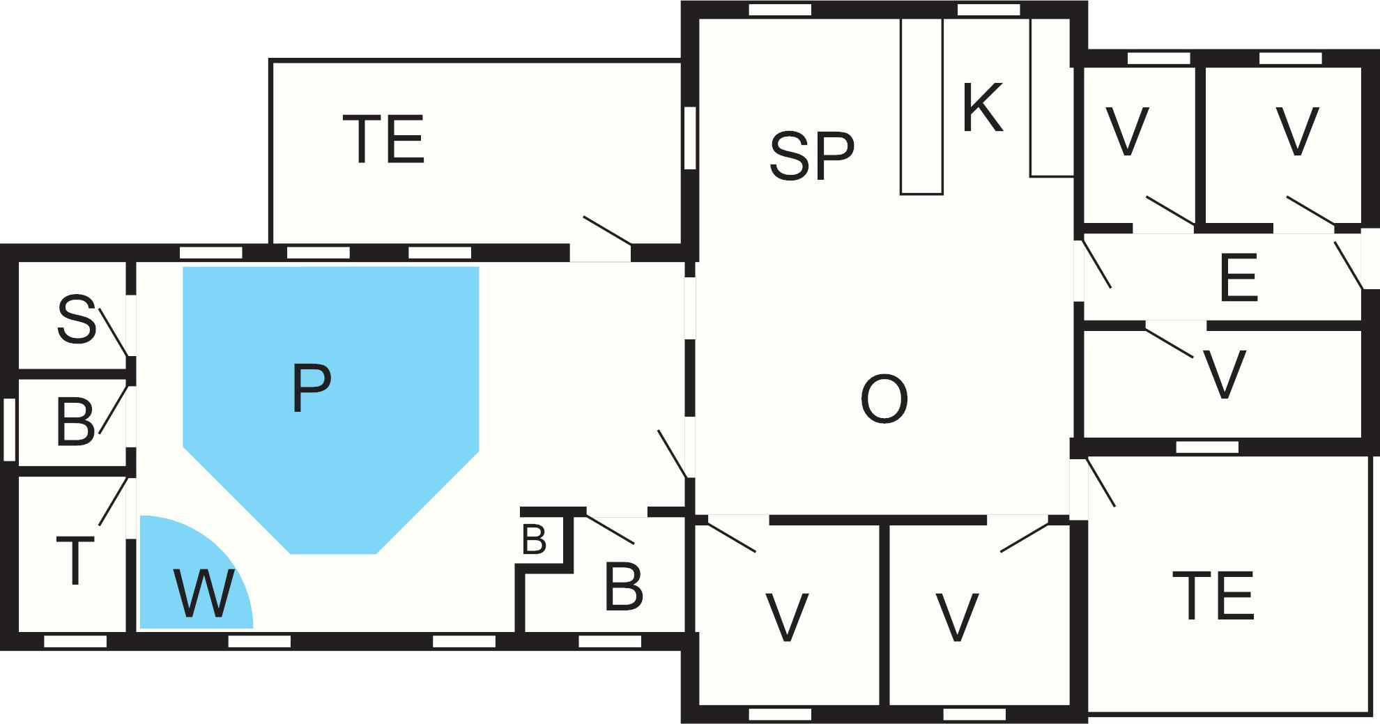 Sommerhus med swimmingpool beliggende 400 meter fra Vesterhavets hvide sandstrand. Husets to terrasser, har begge flot udsigt over klitterne. Huset er praktisk indrettet til såvel en, som to familier både sommer og vinter. Det har et åbent køkken med bl.a. opvaskemaskine samt muligheden for, at hygge Jer med gæster i stuen, mens madlavningen klares. I stuen er der brændeovn, adgang til gratis internet, fladskærms-TV med tyske kanaler samt komfortable møbler, hvor I kan slappe af med en god bog eller se Jeres favoritprogram. Der er også opsat PlayStation 3, hvortil I selv kan medbringe spil.