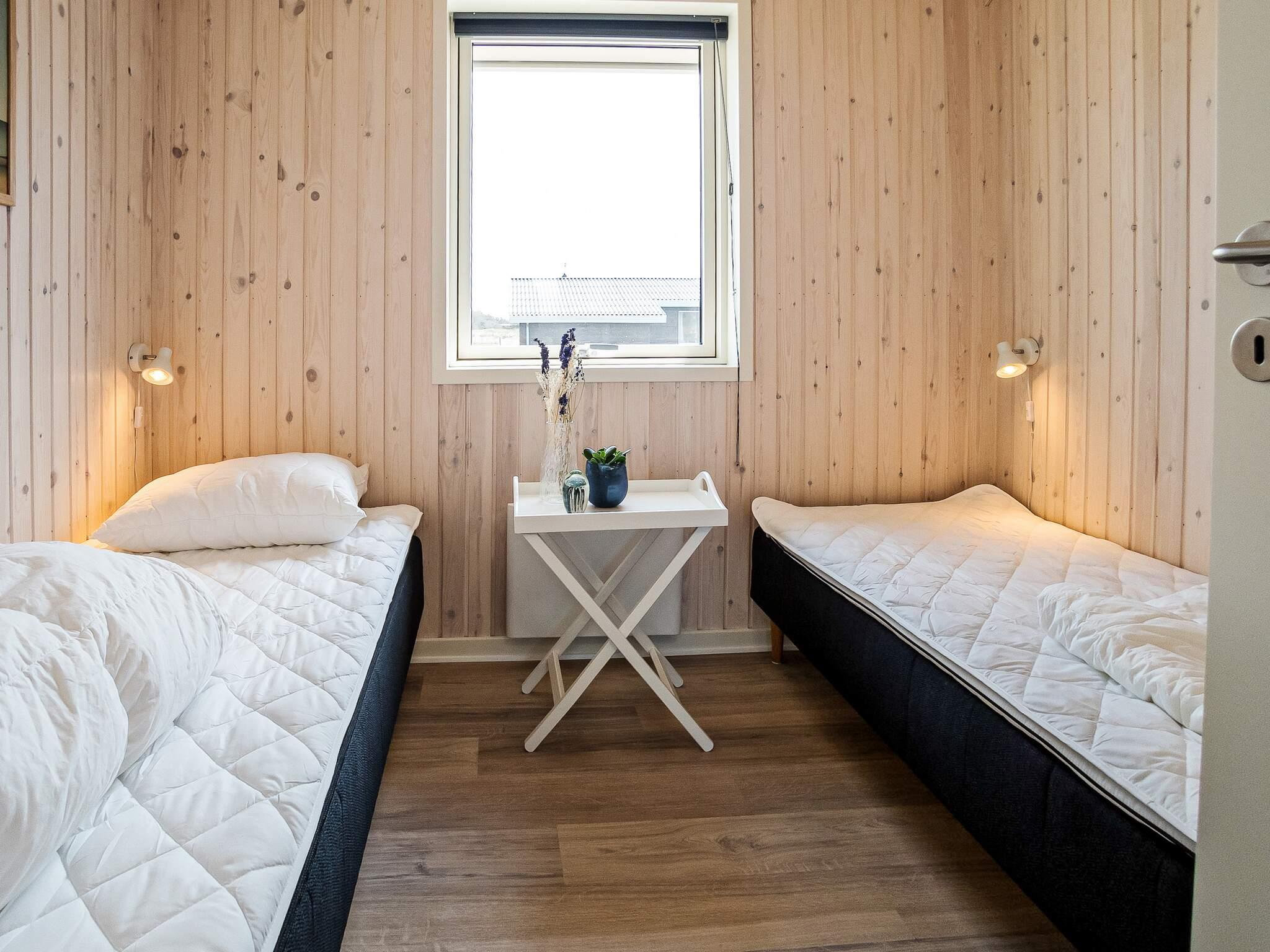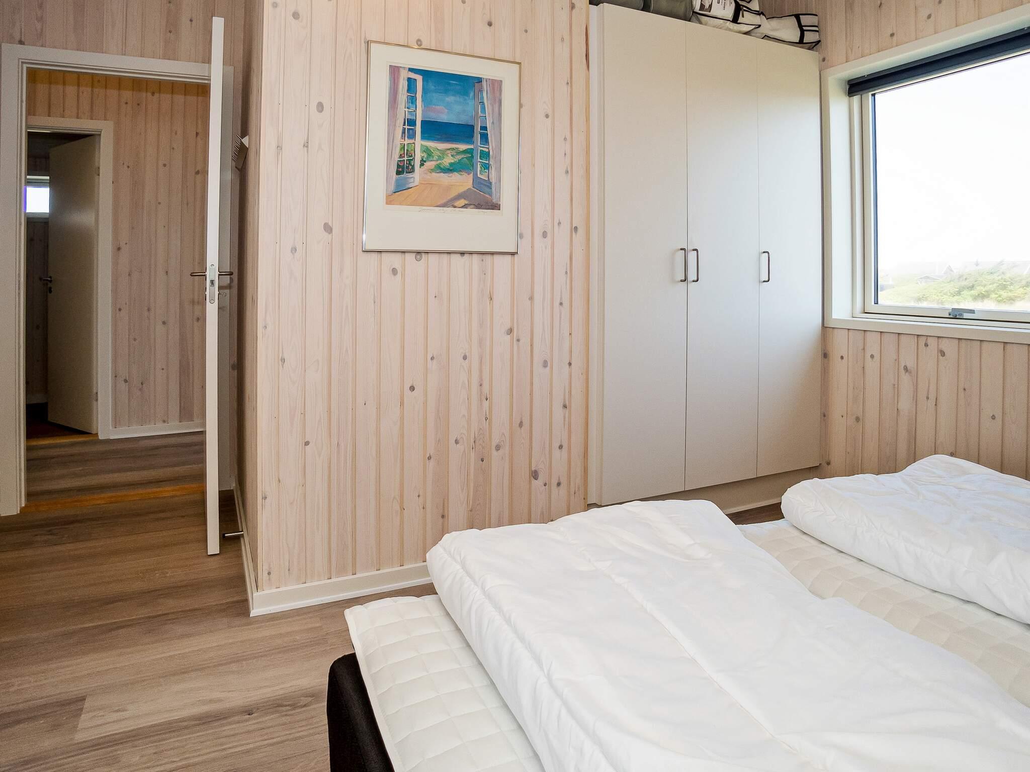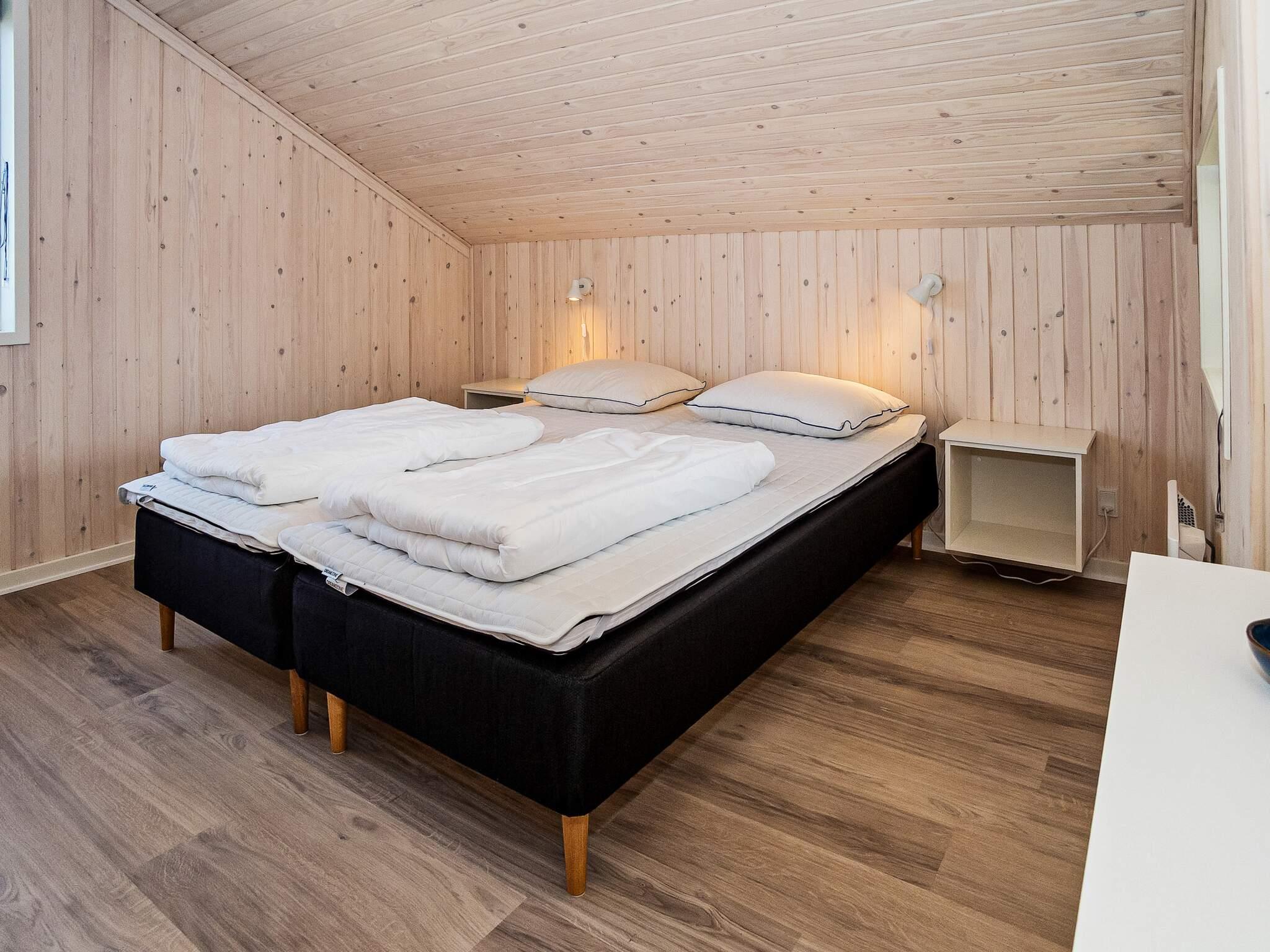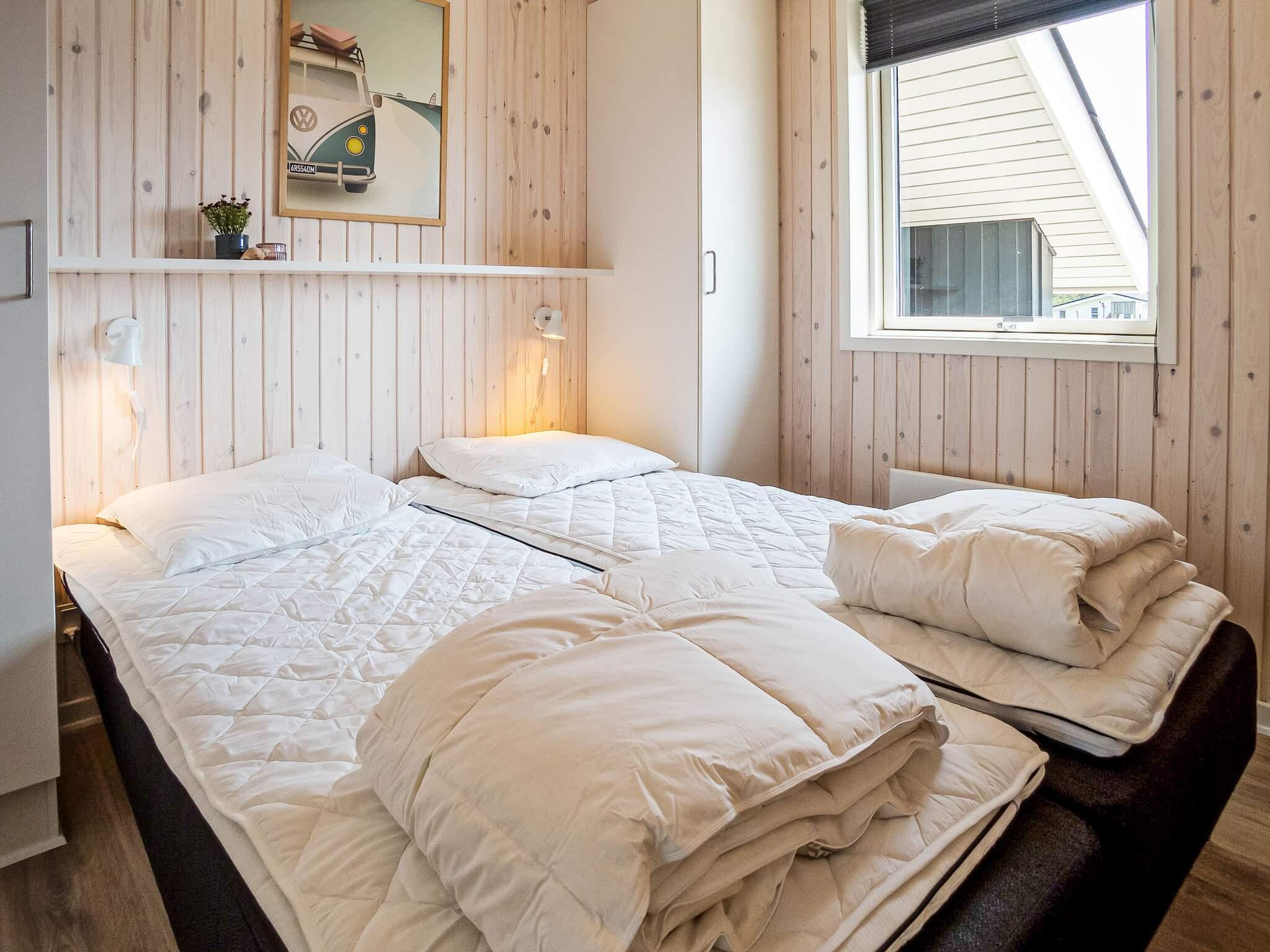 Det rummelige feriehus har tre soveværelser; en med to enkeltsenge (80x200 cm), de to andre med hver en dobbeltseng (160x200 cm). Der er også en smallere dobbeltseng (140x200 cm) i den åbne alkove.