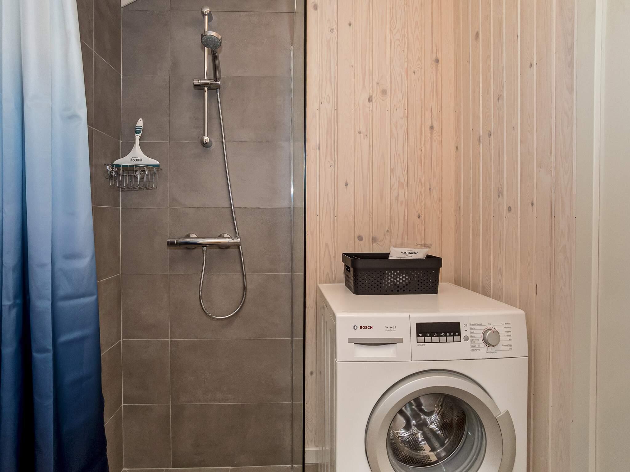 Huset har to badeværelser, begge med bruser. Den ene er også udstyret med sauna. Der er også en vaskemaskine.