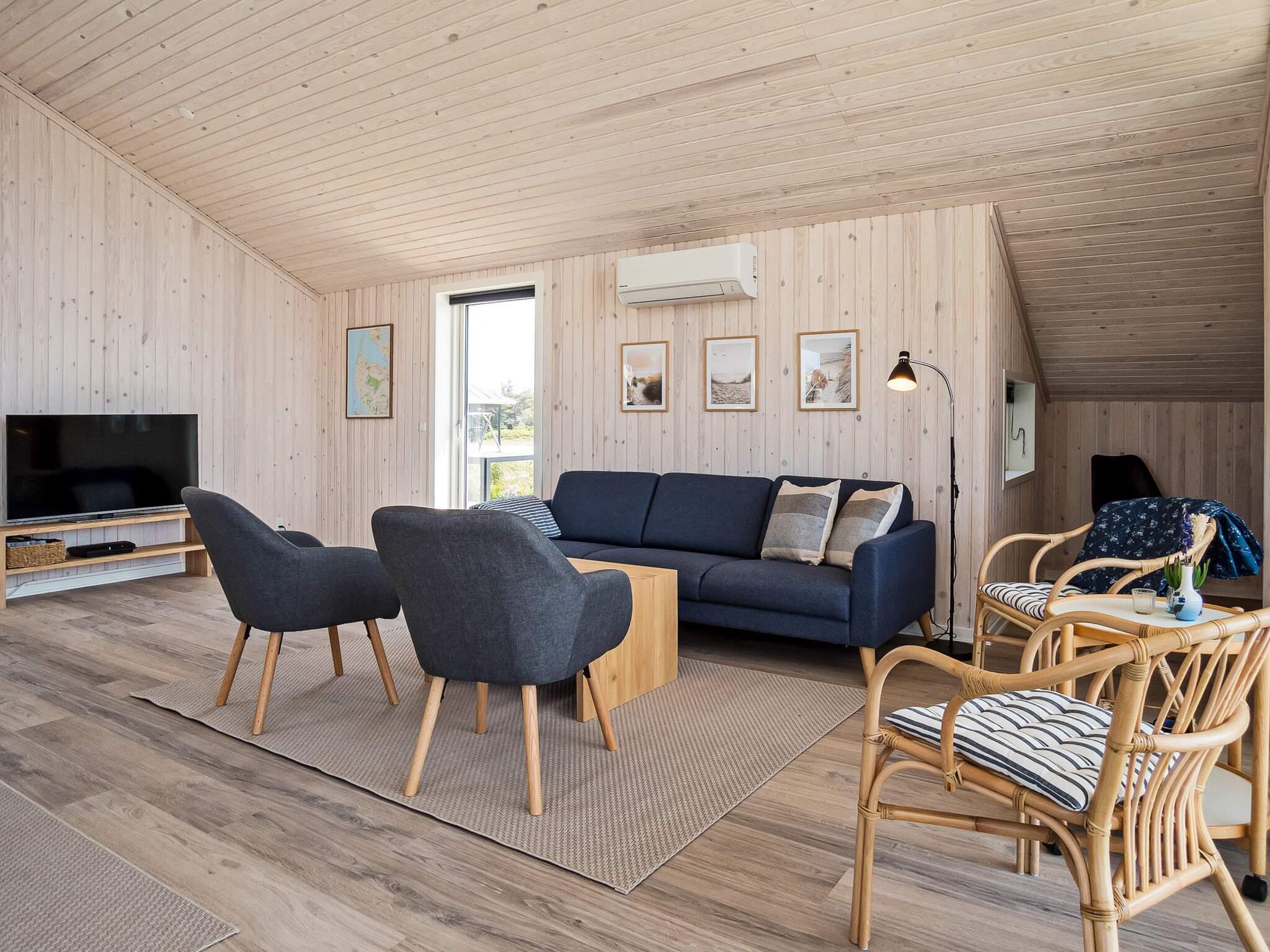 Lyst og veludstyret feriehus med sauna til afslappende timer. Beliggende på en 1.229 m² stor naturgrund, kun 200 m fra Vesterhavets kyst med dens smukke sandstrand.