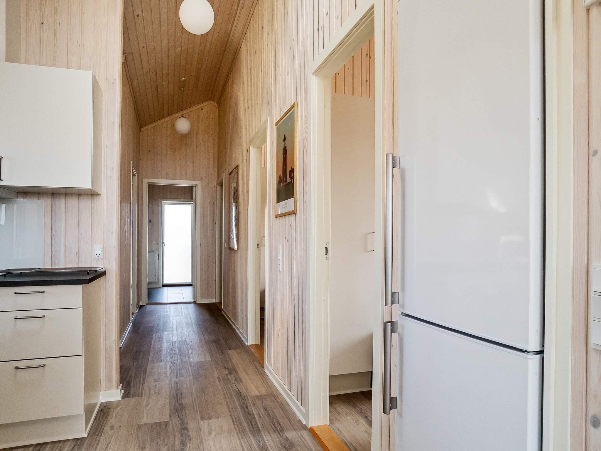 Feriehuset er fyldt med lys takket være de store vinduespartier og ovenlysvinduer. Alle værelser har højt til loftet. På bagsiden af ??huset er der praktisk udendørs bruser med koldt og varmt vand, som kan benyttes fra maj til slutningen af ??oktober. Klimavenlig varmepumpe i huset.