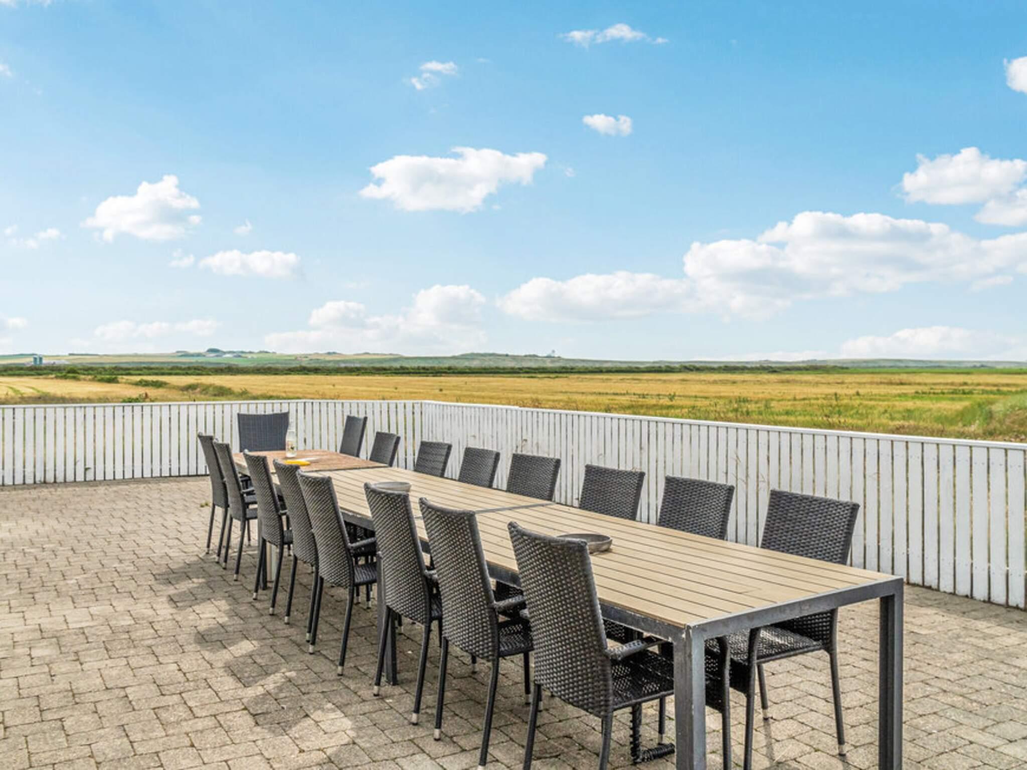 Vrist er omgivet af hav, sø, fjord og bølgende landskab - her er naturen ren og uspoleret. Kun 500 m fra den fantastiske strand ved Vesterhavet ligger dette store, pragtfulde aktivitetscenter, som opvarmes af energibesparende geotermisk energi. Feriehuset byder på alt hvad hjertet begærer af underholdning og rekreative muligheder. I aktivitetsrummet kan familie og venner dyste i både billard og bordtennis. Er du mere til vandaktiviteter, indbyder den store swimmingpool til at bruge flere timer på leg. Det 8-personers spabad er placeret højt over poolen og inviterer dig til at nyde en behagelig undervandsmassage. Som noget helt særligt har huset en indendørs altan, hvorfra man kan se svømmerne i poolrummet. Alle værelser er rummelige og udstyret med dobbeltsenge og eget fladskærms-tv. De fleste af værelserne har egen udgang til terrasse eller altan, hvor du kan nyde den utroligt smukke udsigt over klitterne og landskabet. Køkkenet er meget veludstyret og størrelse til husets størrelse, herunder 2 komfurer og en opvaskemaskine. De velindrettede og indbydende stuer har store fladskærms-tv, og parabolen giver både skandinaviske og tyske kanaler, herunder Viasat til sportsentusiaster. Der er naturligvis gratis internet, og du kan også bruge husets AV-udstyr til eventuelle præsentationer. Det 15.000 m² store udendørsareal omfatter to lukkede hundebaner og en 45x90 m fodboldbane med små og store mål. Ejendommen er derfor perfekt til fodboldklubber på træningslejre, da banen sjældent fryser helt om på grund af dens nærhed til havet i modsætning til baner længere inde i landet. Der er også en beachvolleybane, en petanquebane og en meget stor legeplads for børn med et klatrestativ, rutsjebane, gynger og en kæmpe sandkasse.