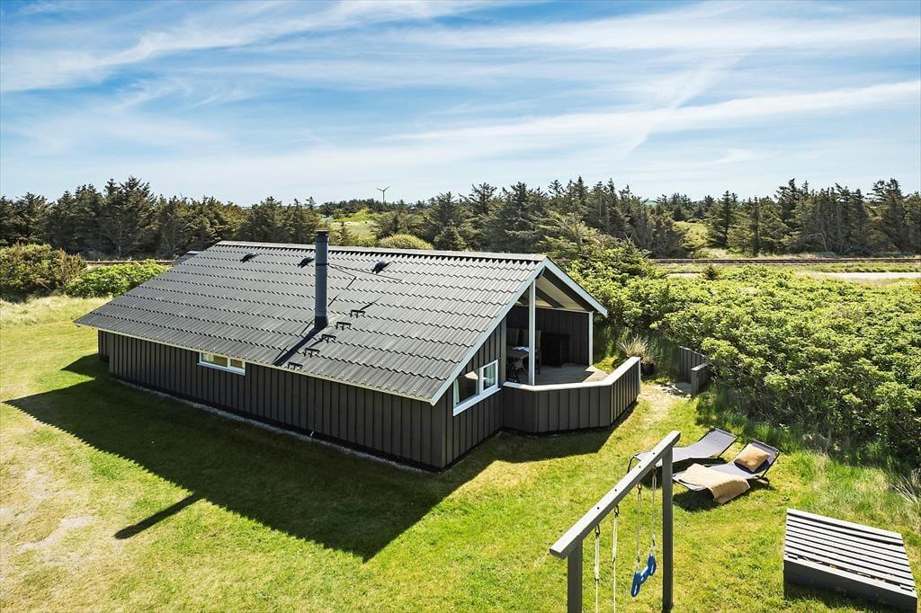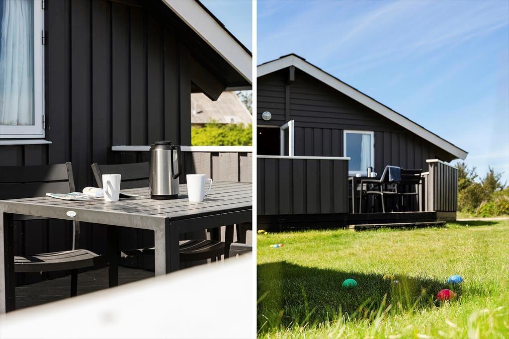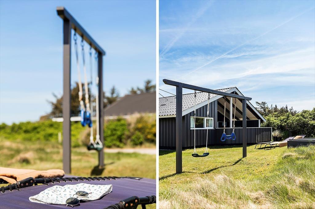På den rummelige terrasse kan du nyde solen i liggestolene eller samles om grillen til et lækkert måltid under åben himmel. Den 800 m² store grund giver masser af plads til leg og afslapning, og for de yngste gæster er der både gynge og sandkasse, hvor fantasien kan få frit spil. Her kan du høre fuglene synge og mærke den friske havluft, mens du nyder feriens rolige tempo.