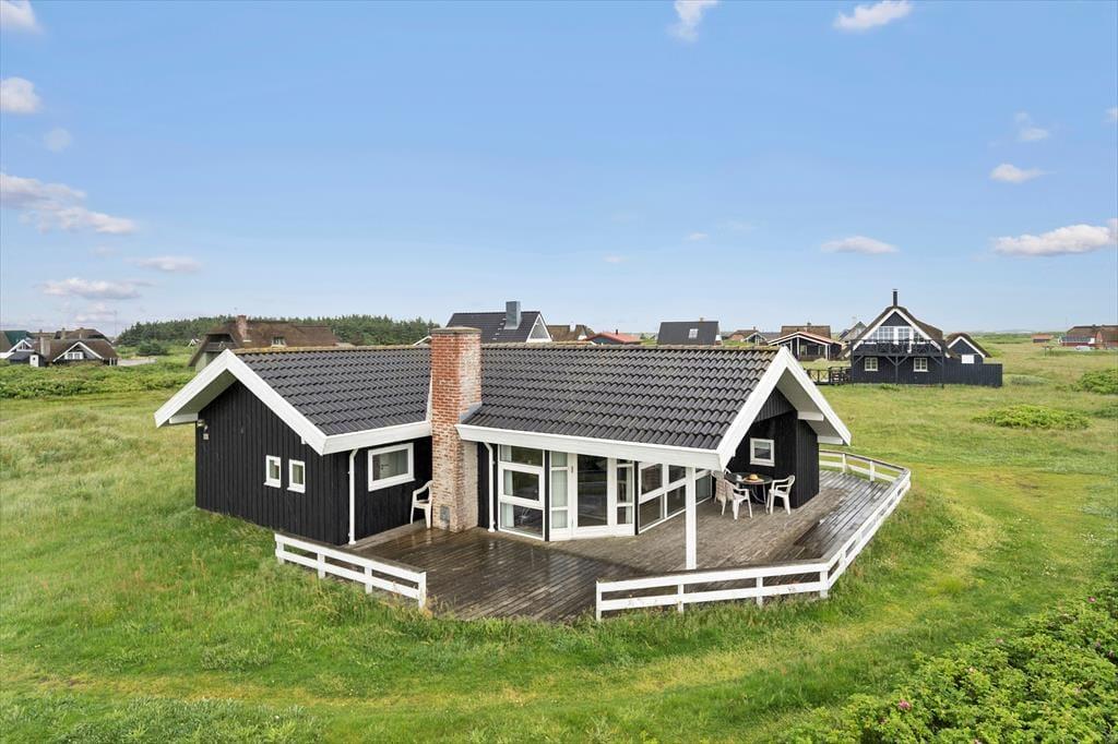 Når solen skinner eller vinden luner fra havet, inviterer terrassen og de hyggelige udendørsområder til afslapning og samvær. Her kan du finde læ og sidde i ro og mag med en god bog eller nyde et måltid under åben himmel med udsigt til den smukke natur omkring Vrist. Den korte afstand til stranden gør det nemt at tage spontane ture ned til vandet – måske med morgenkaffen i hånden eller bare for at dyppe tæerne i bølgerne. Børnene kan finde masser af plads til leg og boltre sig frit i de rolige omgivelser.