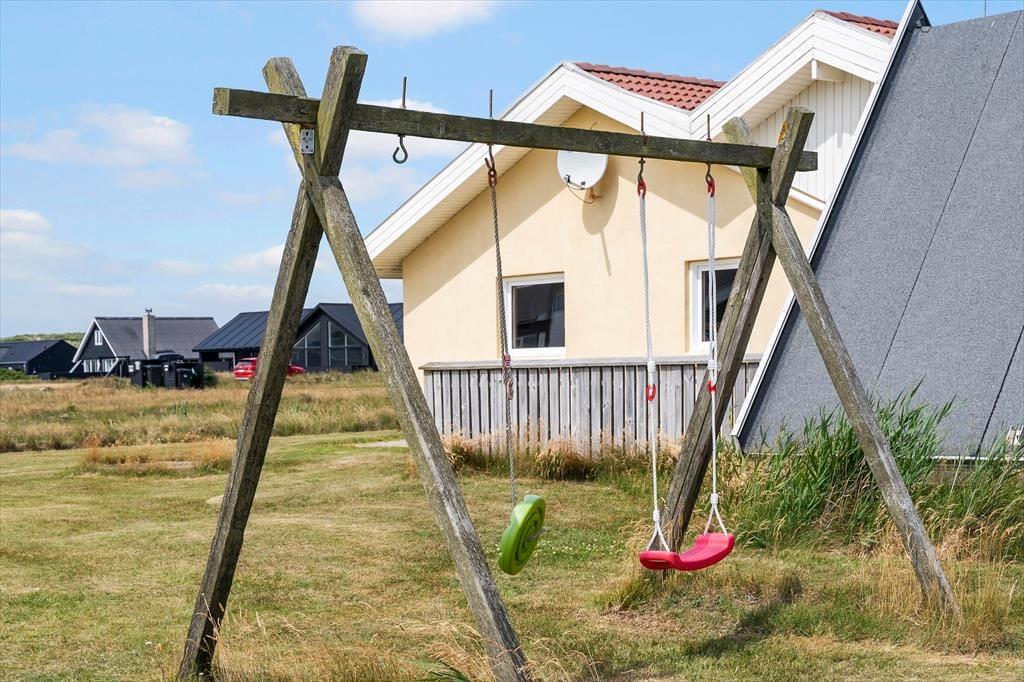 Udelivet omkring sommerhuset er lige så indbydende som det, der venter indenfor. Haven er hele 2500 m² stor og indrettet med gynger, rutsjebane og sandkasse, så børnene nemt kan få mange timer til at gå i det fri. Terrasserne, der vender mod syd og vest, giver gode muligheder for at finde både sol og læ – perfekt til morgenkaffe, afslappede eftermiddage og lange sommeraftener med grill og hyggesnak. Og så kan både børn og hunde trygt lege på den store grund, mens de voksne læner sig tilbage og nyder roen og den friske luft fra havet.