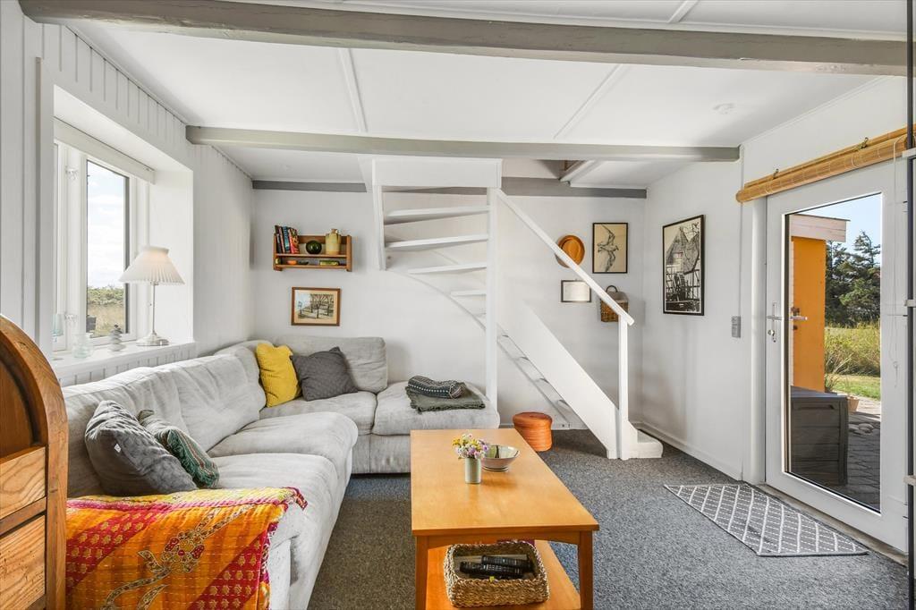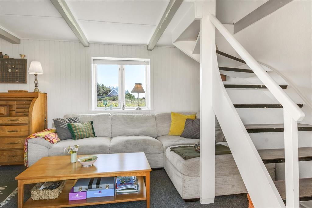 Hvis du er på jagt efter et sommerhus med sjæl, historie og en stemning af ægte ferieliv, så er huset på Flyvholmvej 21 i Vrist et godt bud. Sommerhuset er oprindeligt opført i 1937 og emmer af klassisk sommerhuscharme. Indretningen er hyggelig og personlig, og du får glæde af både to plan med hems og en fredelig placering kun 650 meter fra Vesterhavet.