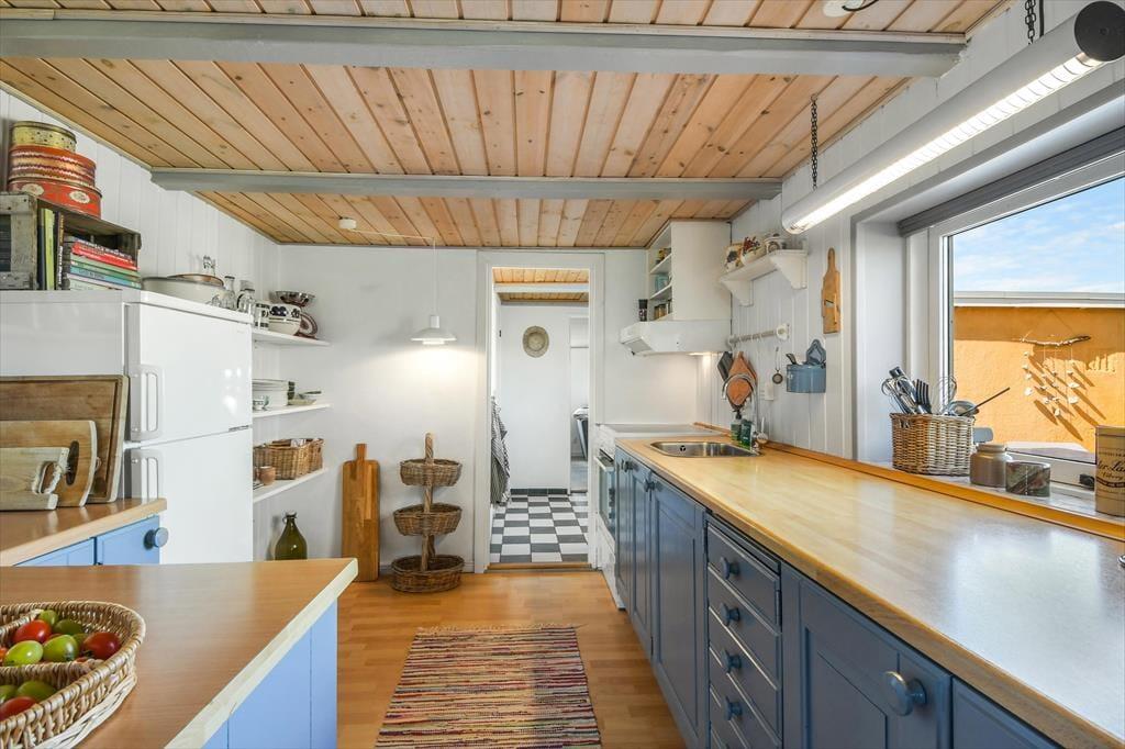 Når du træder ind i det stemningsfulde sommerhus på Flyvholmvej 21, er det som at træde ind i en mere rolig tid. Det charmerende træhus rummer en dejlig atmosfære, hvor den personlige stil og de klassiske materialer skaber en varm og afslappet ramme om ferien. Køkken, spiseplads og stue ligger i åben forbindelse i stueplan og skaber et naturligt samlingspunkt for familien. Den hyggelige hems på førstesalen fungerer som en ekstra opholdsplads eller et fredeligt hjørne, hvor børn og voksne kan trække sig tilbage. Alt i alt får du en feriebase med karakter og sjæl – perfekt til dig, der sætter pris på den ægte sommerhusstemning.