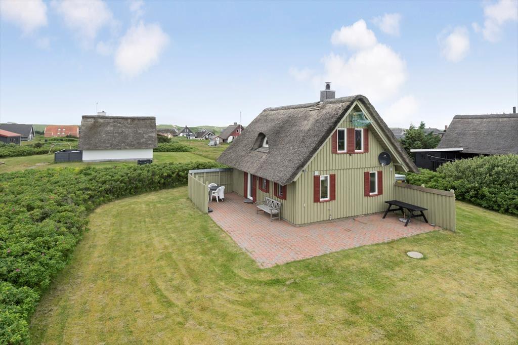 Når vejret er godt, er det oplagt at rykke ferien udenfor. Haven og terrassen omkring huset indbyder til lange, dovne dage under åben himmel. Her er der plads til at nyde morgenkaffen i solen, dække op til aftensmad i det fri eller blot læne sig tilbage med en bog. Og når du får lyst til en strandtur, er der kun 350 meter til de høje klitter og det brusende hav – perfekt til både spontane dukkerter, gåture i sandet og smukke solnedgange.