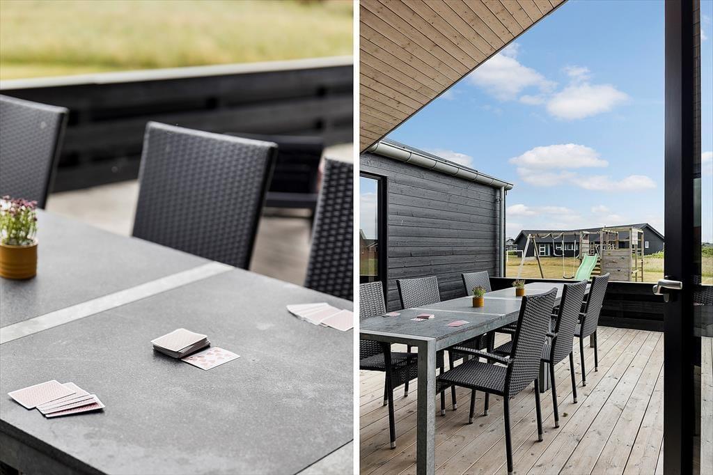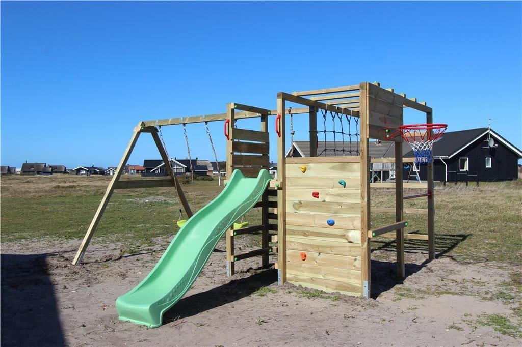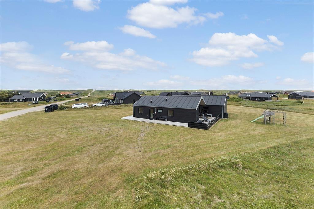 Udendørs byder huset på masser af muligheder for at nyde livet under åben himmel. Den store terrasse indbyder til både solbadning og hyggelige middage, og en del af terrassen er overdækket, så I også kan sidde ude, selv når duggen falder, eller solen står højt på himlen. For de mindste er der et sjovt legetårn i haven, og med masser af plads omkring huset kan børnene lege frit og hunden kan løbe rundt. Her er plads til at koble helt fra – med lyden af bølgerne i baggrunden og vinden i klitterne som eneste forstyrrelse. Med kun 200 meter til stranden er det nemt at tage flere ture frem og tilbage i løbet af dagen – til en dukkert, en gåtur langs vandet eller bare for at nyde udsigten.