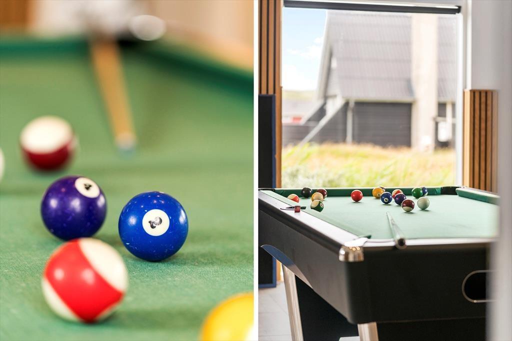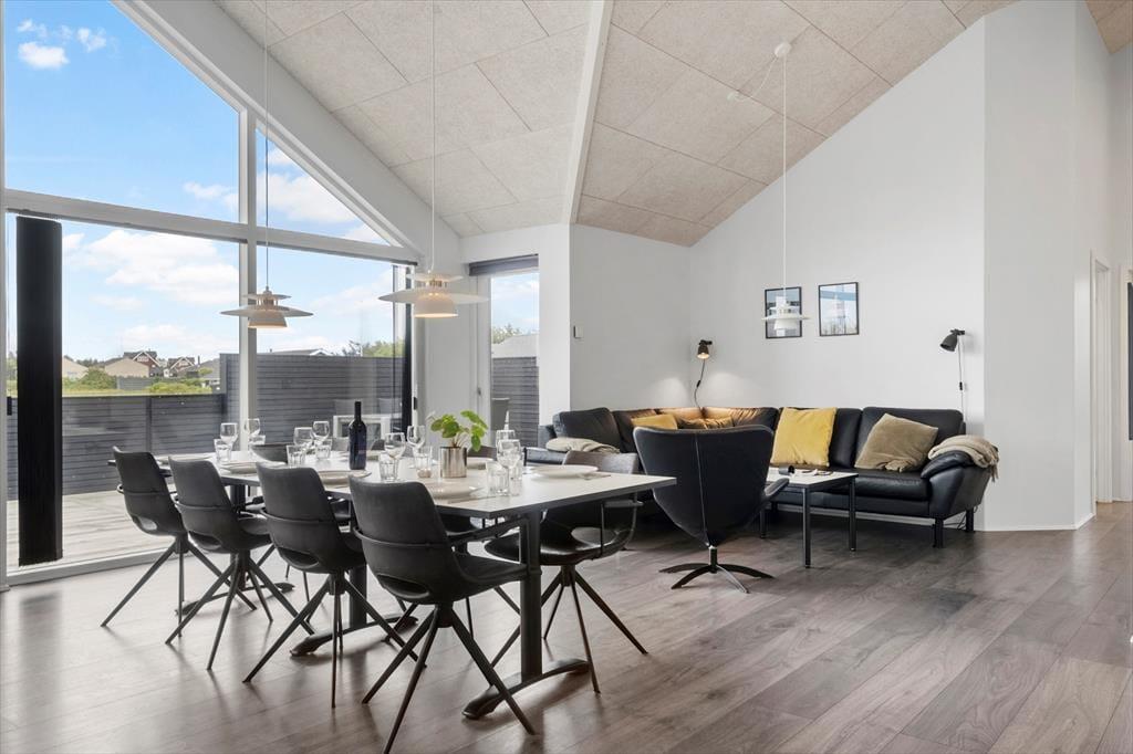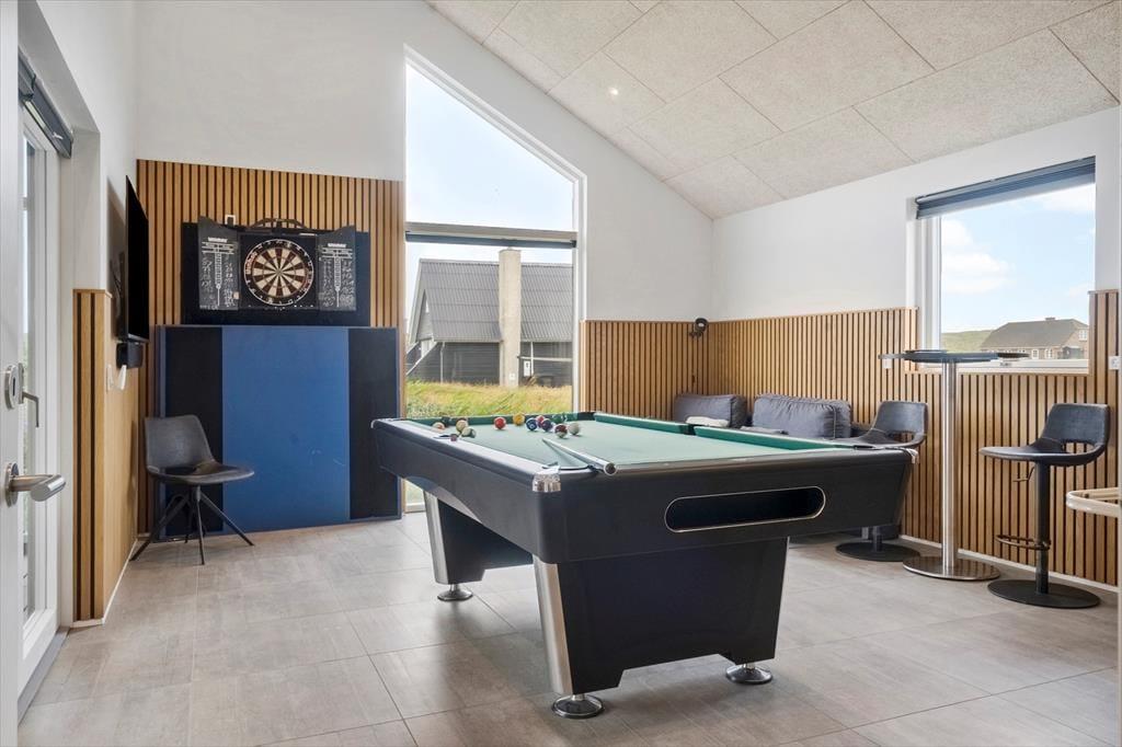 Når du træder ind i dette indbydende sommerhus, mødes du af et lyst og moderne miljø med højt til loftet, stilrene linjer og et naturligt lysindfald, der strømmer ind gennem de store vinduer. Køkken og stue ligger i åben forbindelse og danner et naturligt samlingspunkt for alt fra fælles madlavning og brætspil til afslapning i sofaen. I aktivitetsrummet venter underholdning for både store og små med poolbord, bordtennis og dart – ideelt til hyggelige konkurrencer på tværs af generationer. Huset er både funktionelt og æstetisk indrettet, så det føles som en ferieoase, hvor du hurtigt falder til ro.