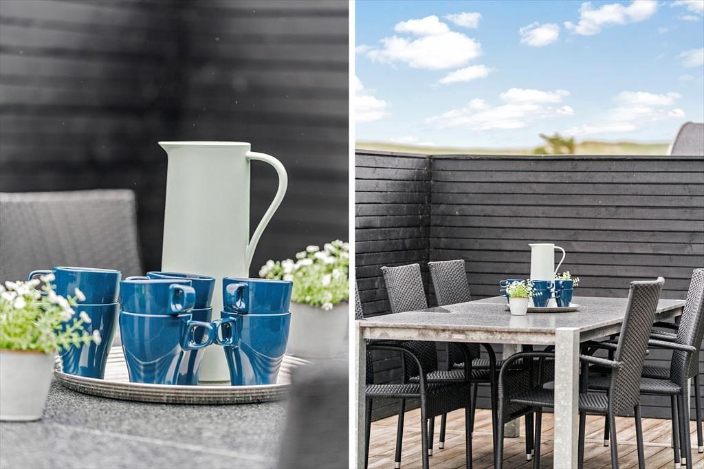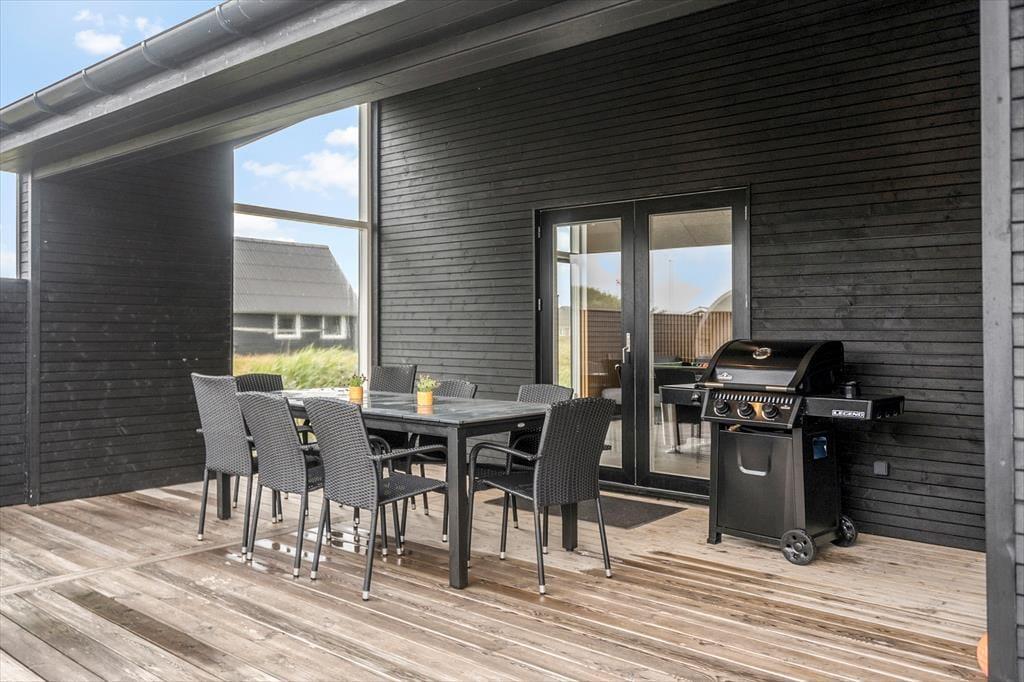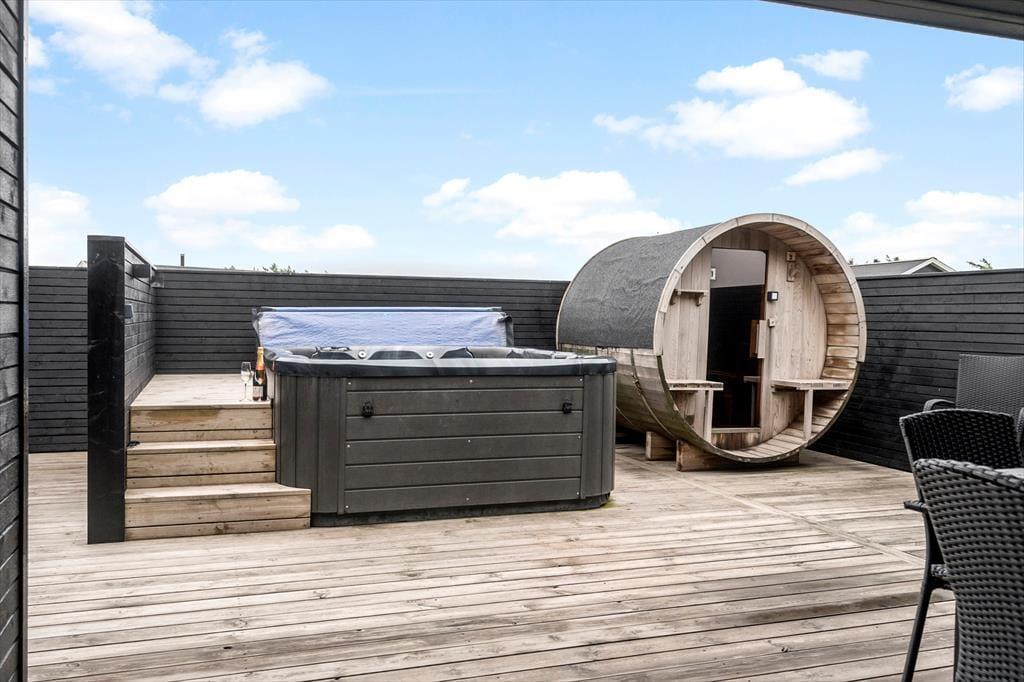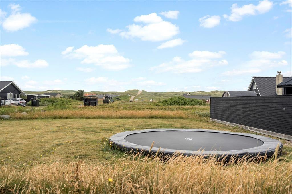 Når vejret tillader det – og det gør det ofte ved Vestkysten – trækker livet udenfor på den store terrasse, hvor du kan nyde solen i liggestolen, sætte gang i grillen eller slappe af i det udendørs spabad. Er du mere til varme og velvære, kan du sætte dig ind i den udendørs sauna og lade roen sænke sig. Børnene kan bruge timer på trampolinen, mens hunden nyder friheden i de grønne omgivelser. Haven indbyder til både leg og ro, og med plads til alle er det nemt at finde sit eget lille hjørne – uanset om du vil læse en bog i hængekøjen eller bare lytte til Vesterhavets brusen i det fjerne.