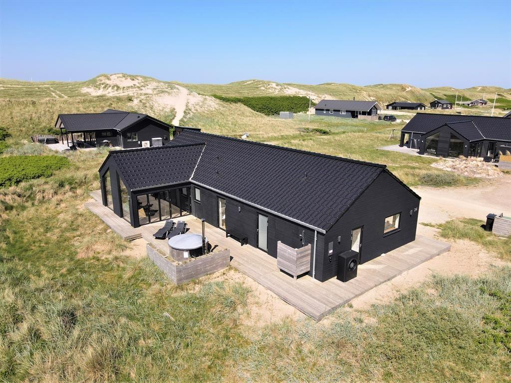 Drømmer du om en ferie, hvor både afslapning og underholdning er i højsædet, så er dette lyse og moderne sommerhus på Byskovvej 34 i Vrist et oplagt valg. Her kan du lade skuldrene sænke sig i det udendørs vildmarksbad, konkurrere i pool og bordtennis i aktivitetsrummet og nyde livet på den store, delvist overdækkede terrasse. Huset byder også på indendørs wellness med spa og sauna – og som en ekstra bonus er din hund også velkommen.