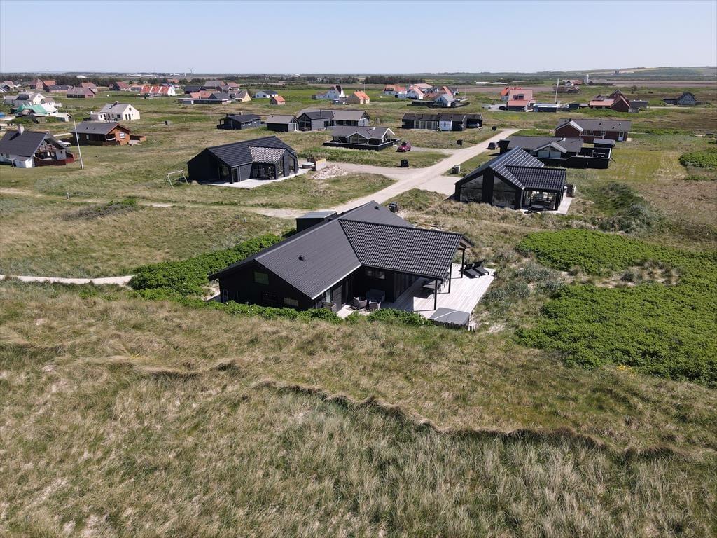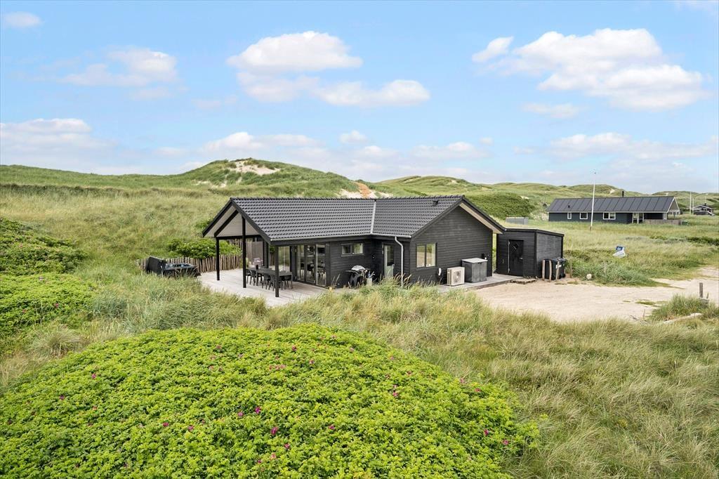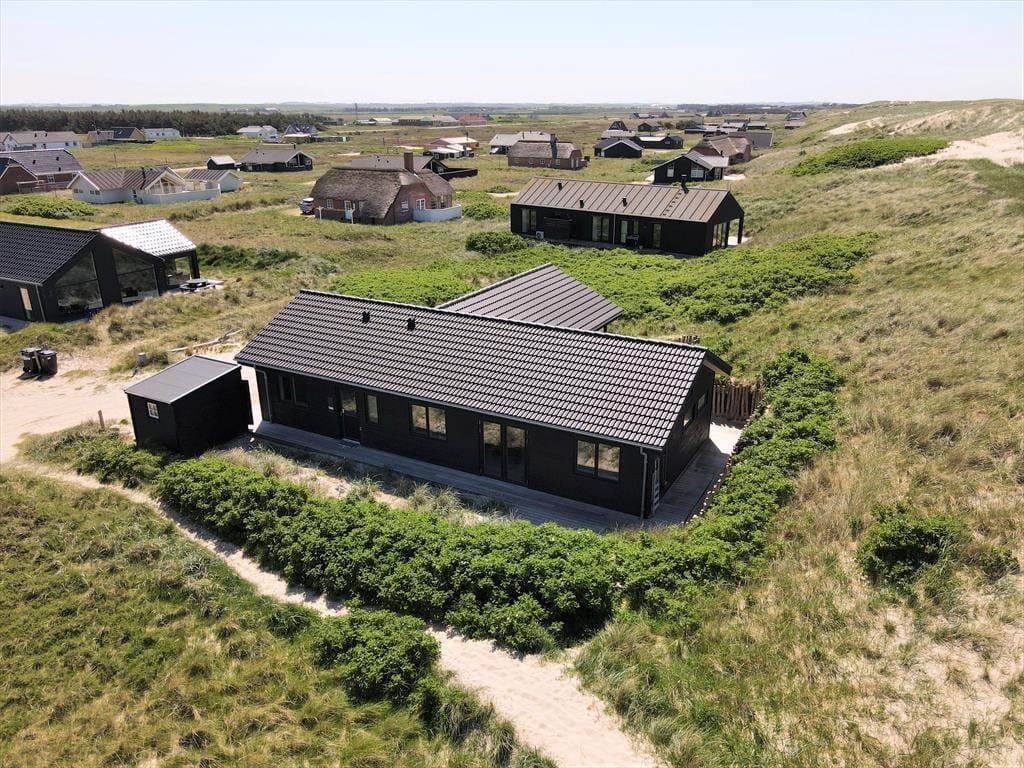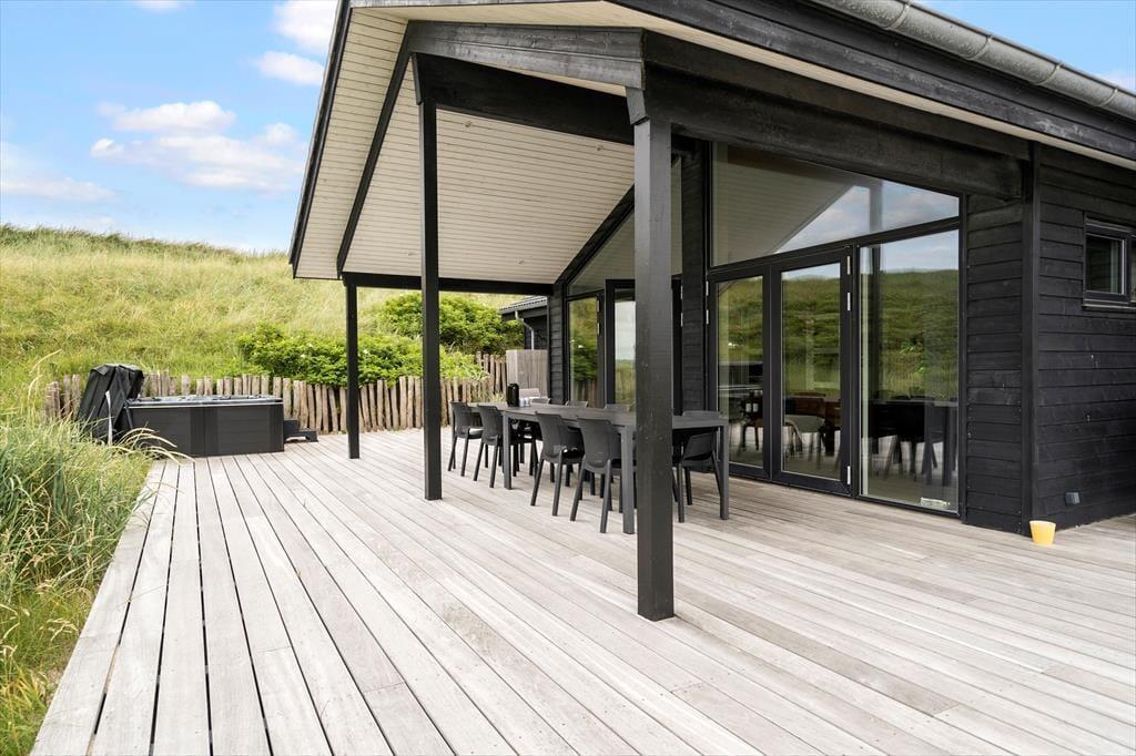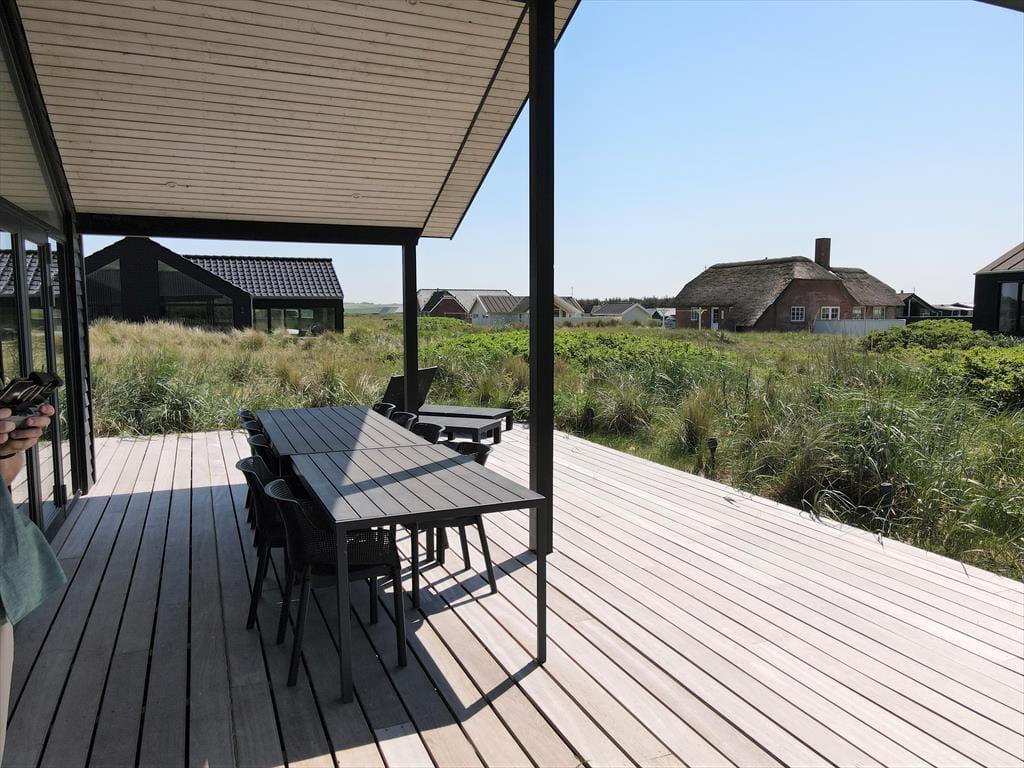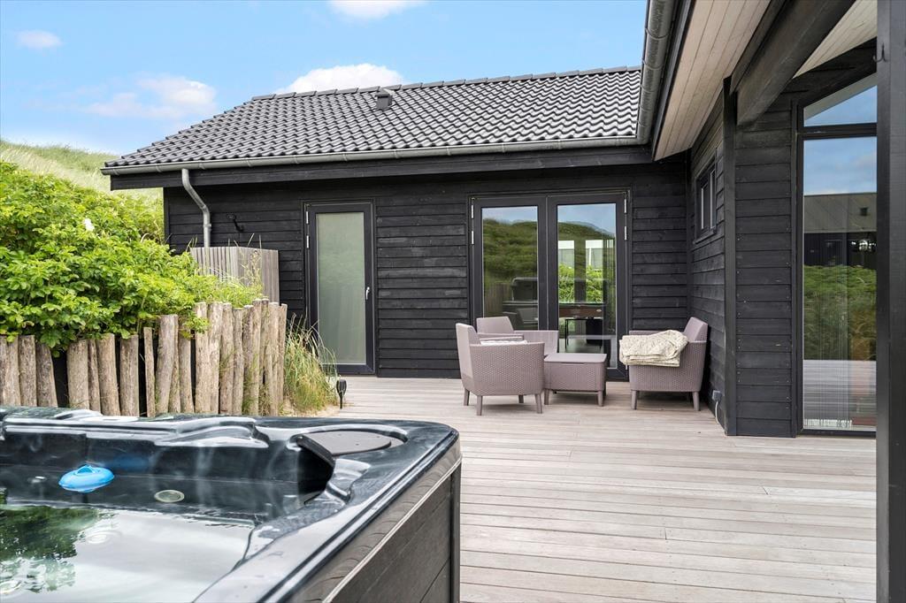 Moderne sommerhus i Vrist med sauna, udespa og solrig terrasse tæt på Vesterhavet og naturen.