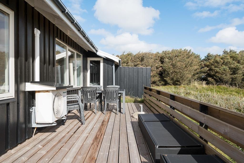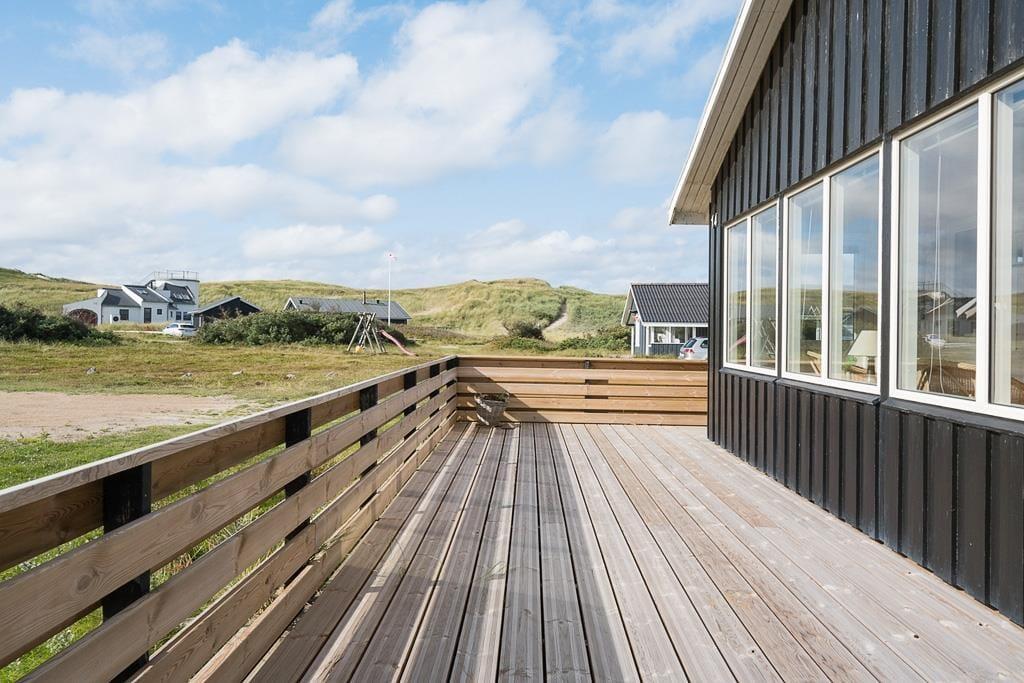 Rundt om huset venter en naturskøn grund med plads til både leg og ro. Den store træterrasse ligger med kig til klitterne og er udstyret med havemøbler, så du nemt kan finde en god plads i solen – eller skyggen, hvis du foretrækker det. Her kan du spise dine måltider under åben himmel, nyde dagens første kop kaffe i stilhed, eller tænde op i grillen og lade duften af sommer sprede sig. Den lukkede vej og naturgrunden omkring huset giver en fredelig og privat stemning, som gør det let at koble helt fra. Børnene kan more sig med at gynge i haven eller bygge sandslotte nede på stranden.