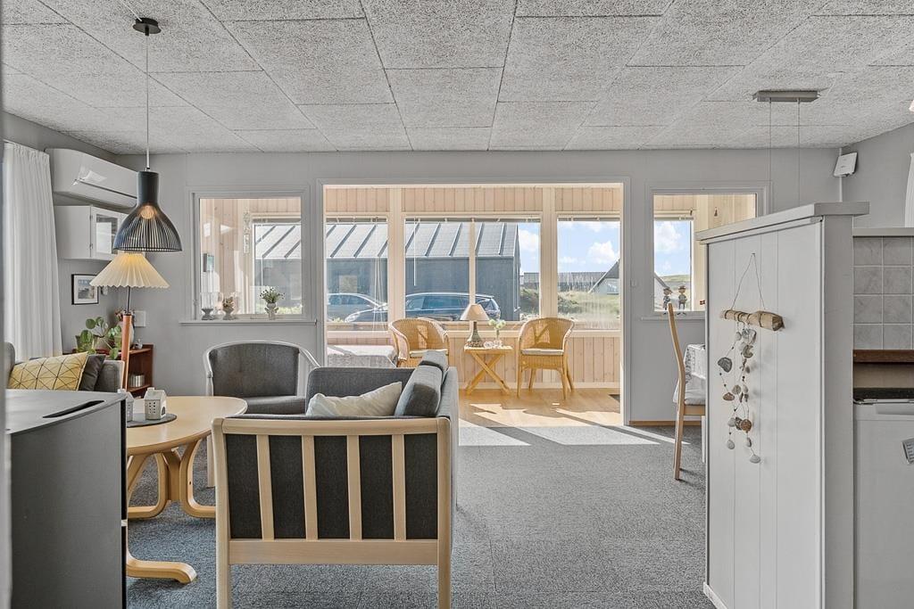 Sommerhuset er både hyggeligt og funktionelt indrettet og har en indbydende atmosfære, hvor feriestemningen hurtigt melder sig. Indenfor mødes du af lyse og venlige rum, hvor køkken og stue ligger i åben forbindelse og indbyder til samvær. Her kan du nyde måltider med familien, slappe af med et spil kort, eller lade blikket glide ud gennem vinduerne og følge lyset over klitterne. Ud over de to soveværelser i hovedhuset byder sommerhuset også på et praktisk anneks, som er ideelt til dem, der ønsker lidt ekstra privatliv – måske teenagere eller bedsteforældre. Og når solen skinner, føles udestuen som en naturlig forlængelse af opholdsrummet – perfekt til en stille stund med en god bog eller en kop te.