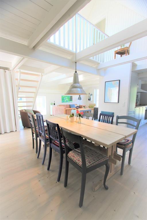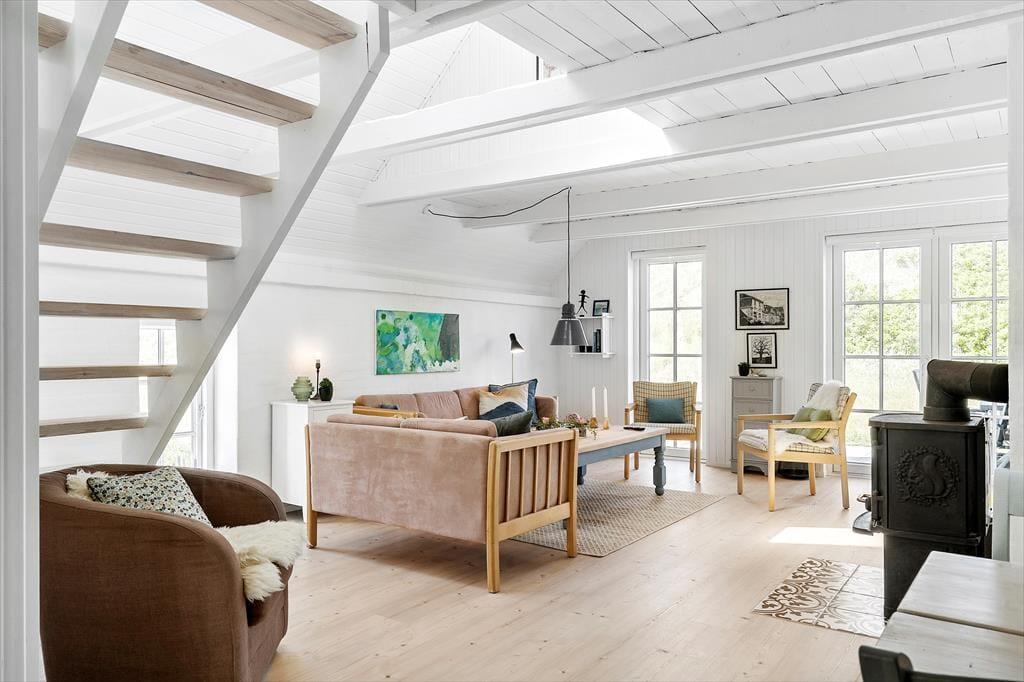 Så snart du træder ind i huset, mærker du den behagelige og afslappede atmosfære. De lyse rum, den stilrene indretning og de store vinduer giver en skøn fornemmelse af plads og lys – og samtidig er der masser af hygge og varme i indretningen. Køkken og stue ligger i åben forbindelse, så samtalen kan flyde frit, uanset om du laver mad, læser i sofaen eller bare nyder en stille stund med havets brusen i baggrunden. Badeværelset er indrettet som en lille wellness-oase med indendørs spa, hvor du kan nyde et varmt bad efter en lang dag på stranden eller en blæsende gåtur langs klitterne. Huset er velegnet til både par og familier, og med tilladelse til hund bliver ingen efterladt derhjemme.