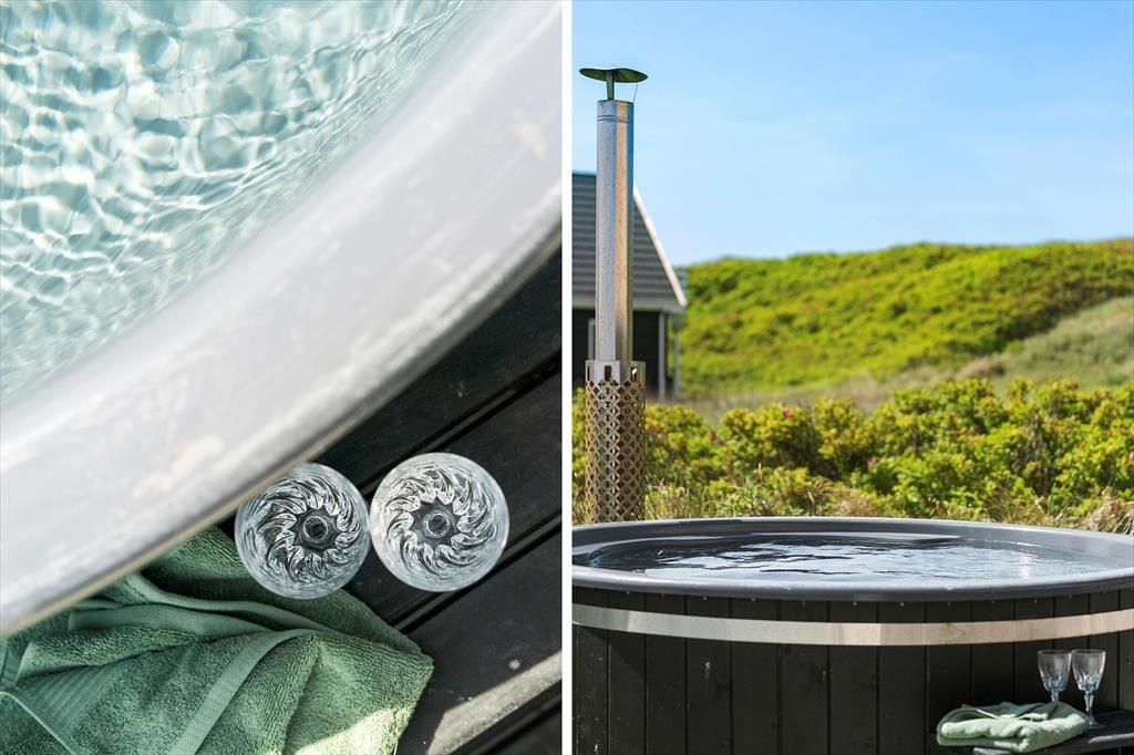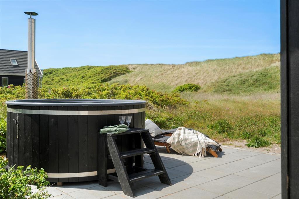 Den friske havluft og den unikke beliggenhed lige ved stranden gør det oplagt at tilbringe masser af tid udendørs. På husets terrasse kan du slå dig ned i loungemøblerne, mærke solen i ansigtet og lytte til bølgerne, der bryder mod kysten. Når dagen går på hæld, venter vildmarksbadet – og der er næsten ikke noget bedre end at sidde i det varme, boblende vand, mens stjernerne tændes på himlen. Haven omkring huset giver plads til leg og bevægelse, og for dig, der rejser med hund, er det oplagt at starte dagen med en tur i det åbne klitlandskab. Uanset om du nyder roen med en god bog eller samles med familien til grillmiddag under åben himmel, danner omgivelserne den perfekte ramme om dit udeliv.