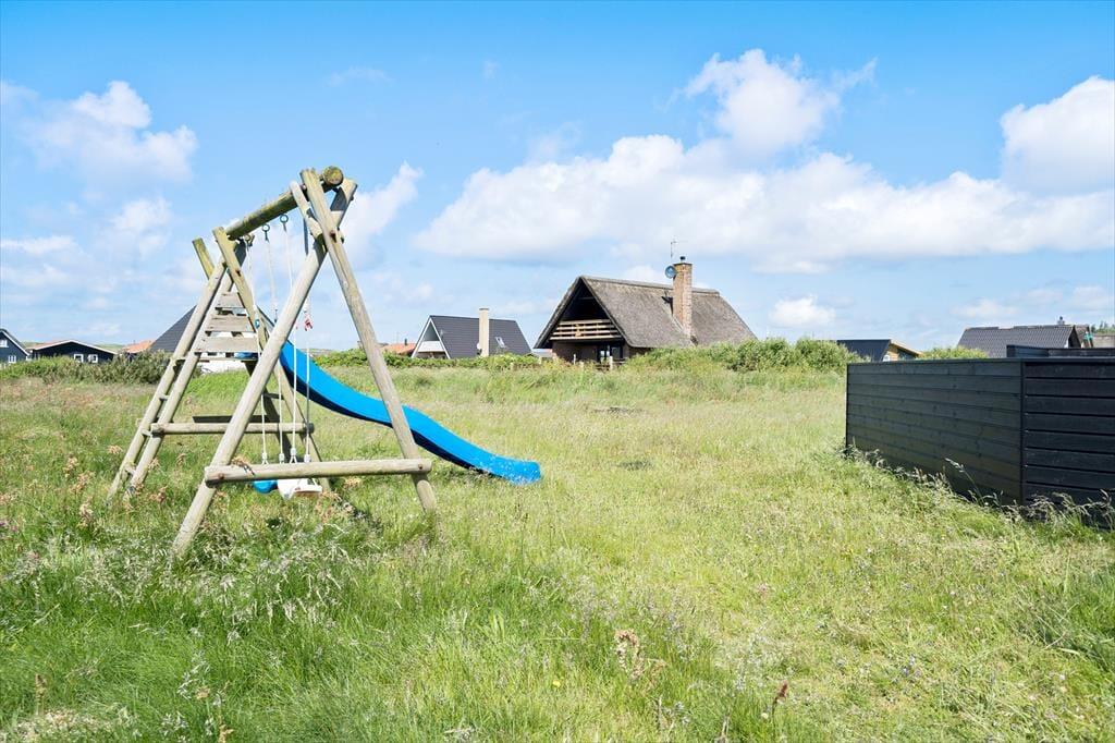 Sommerhusets lækre terrassemiljø kan hurtigt blive din foretrukne opholdsplads, når solen står højt på himlen, for det er intet mindre end herligt at sidde her med udsigt til klitter og drivende skyer. Og selv når mørket falder på, kan du blive siddende – for eksempel er det en helt særlig oplevelse at sidde her i vildmarksbadet, mens roen falder over sommerhusområdet, og stjernerne begynder at titte frem i det høje. På naturgrunden er der legestativ med gynger og rutsjebane, og der er god plads til at løbe og lege. Så mens børnene underholder sig selv, kan de voksne måske lige nå en ekstra kop kaffe, inden det er tid til at udforske Vrist og omegn.