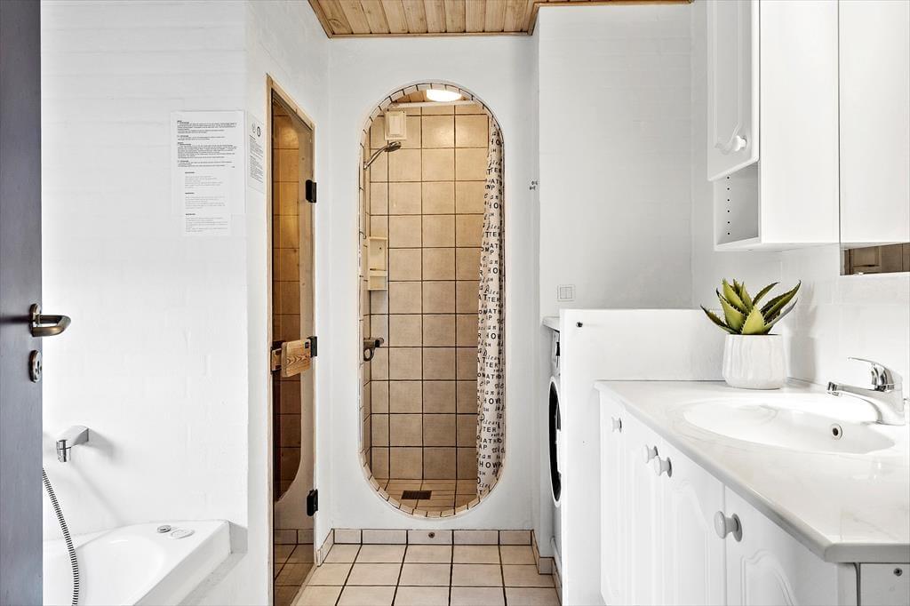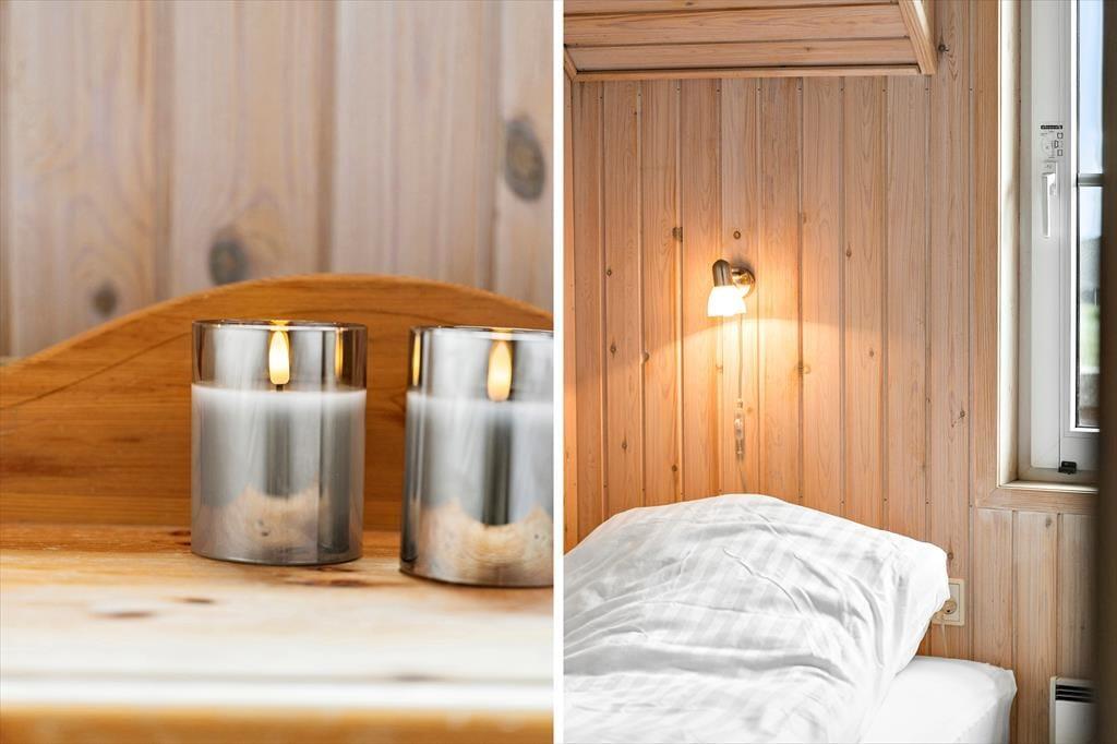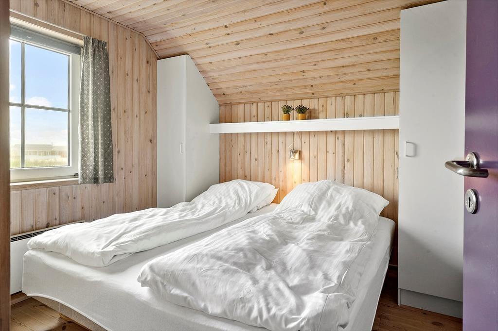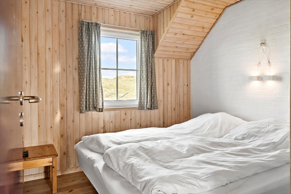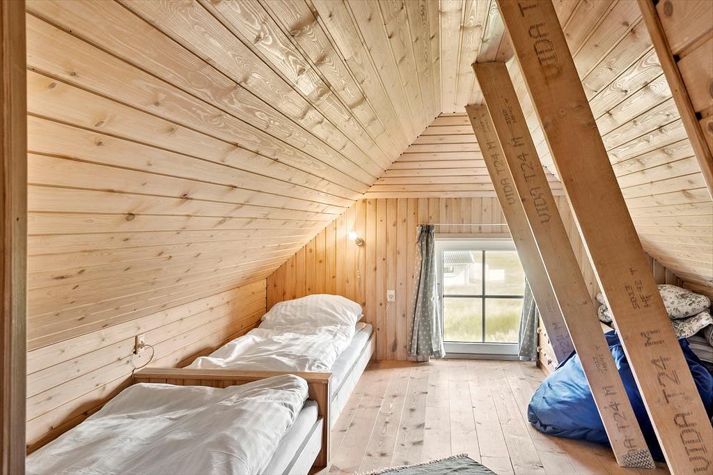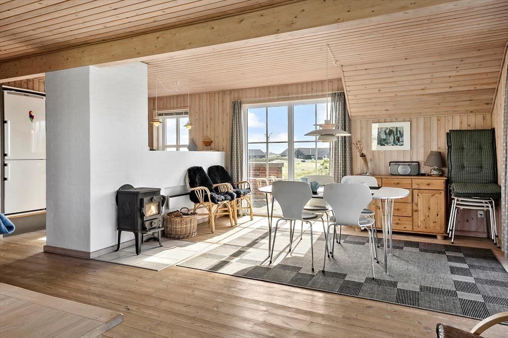 Inden døre i sommerhuset er der lys træbeklædning på væggene, og stuens Morsø-brændeovn og den åbne forbindelse til køkkenet er noget af det, der sætter en stemningsfuld og velfungerende ramme om driverlivet. Uanset om du er i gang med at bage boller eller bare sidder helt tilbagelænet i sofaen, kan du nyde udsigten til klitterne gennem vinduerne – og hvis du åbner havedøren, kan du mærke den friske, salte halvluft og duften af hybenroser ramme næseborene. Har du været ude for at gå tur, kan du varme dig og slappe helt af i spabadet og saunaen, og når det er ved at være sengetid, har du og dine kære ikke bare tre soveværelser, men også en rummelig hems at brede jer på– så alt i alt kan I være otte personer.