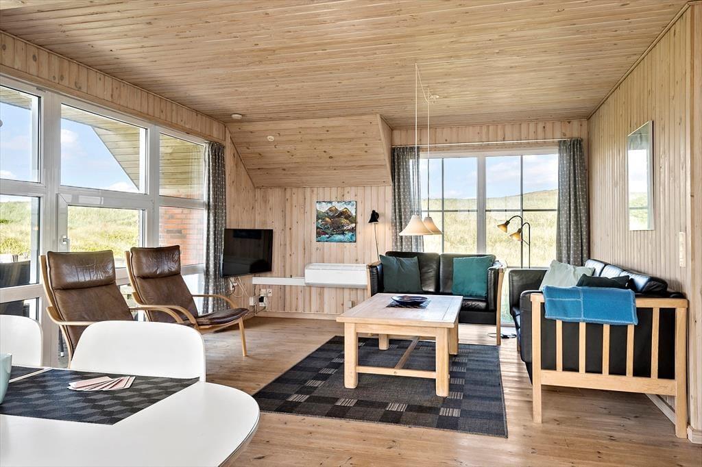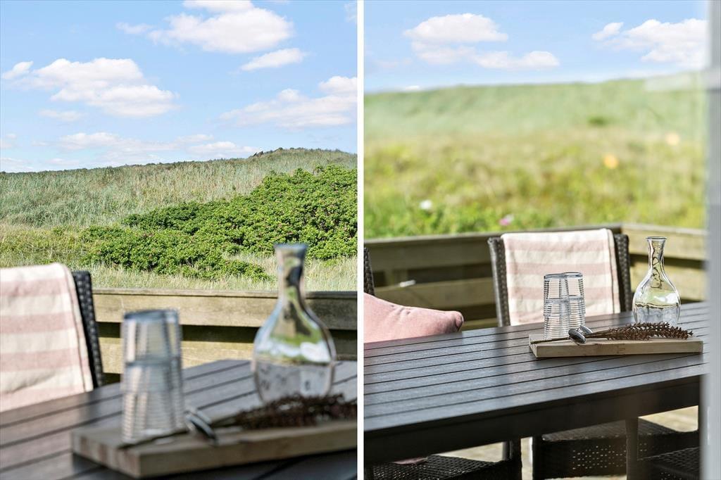 Omgivelserne er billedskønne, når du bor lige ud til kysten. Vil du se havet eller beundre solnedgangen, kan du gå op på den nærmeste klittop for at skue langt og føle dig helt lille i den enorme natur – men du kan selvfølgelig også nyde den friske luft og høje sol hjemme ved huset. Rundt om sommerhuset er der flere terrasser at vælge imellem, og her kan du være i læ af hegnet og samtidig blive lidt ekstra skærmet af klitterne, så det føles nærmest som at sidde i husets egen private gryde. Til børnene er der gyngestativ og sandkasse, og om aftenen har hele familien mulighed for at grille.