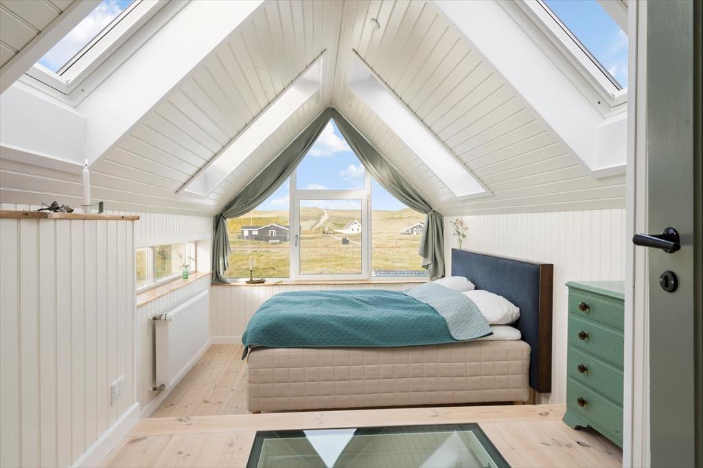 Når du kører mod vestkystens dramatiske landskab og ankommer til Strandvejen 98, mærker du straks den særlige ro, som kun naturen ved Vrist kan give. Det nyrenoverede sommerhus har bevaret sin autentiske charme, og med sin beliggenhed midt i det naturskønne område byder det på en fantastisk udsigt over klitterne. Her kan du nyde de enkle glæder ved at være tæt på naturen, og som prikken over i’et venter et opvarmet vildmarksbad og lækker sauna lige udenfor.
