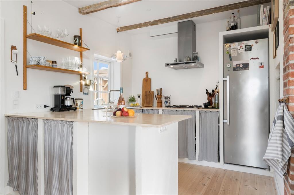 Sommerhuset har gennemgået en nænsom renovering, hvor der er lagt vægt på at bevare den klassiske stil, som passer til husets oprindelige arkitektur. Indenfor mødes du af en hyggelig atmosfære med lyse farver og stilfulde detaljer, der får rummet til at føles både varmt og indbydende. I stuen kan du samle familie eller venner om brændeovnen, hvor ilden knitrer og skaber den helt perfekte ramme for en aften med brætspil eller en god film. Køkkenet ligger i åben forbindelse med stuen, så det er nemt at være sammen, uanset om der bliver lavet mad eller slappet af. Huset rummer tre soveværelser, der ligesom resten af huset er indrettet med tanke på enkelhed og komfort, og her kan op til seks personer sove trygt og godt.