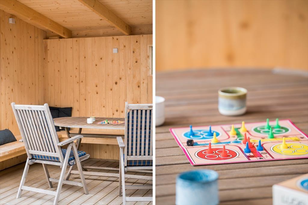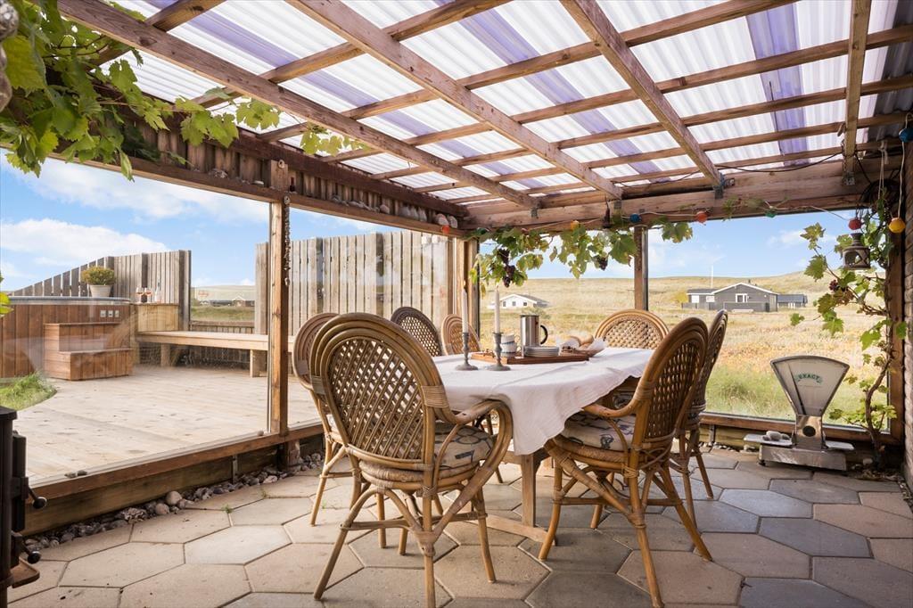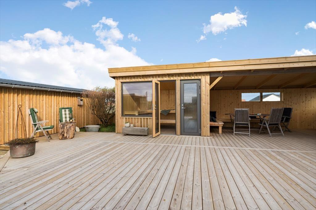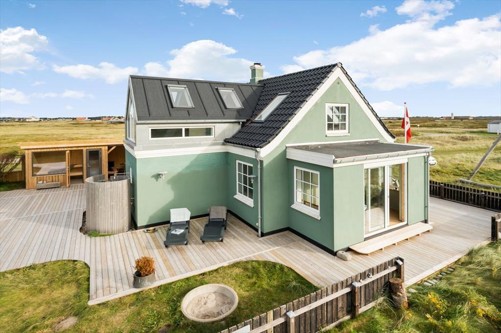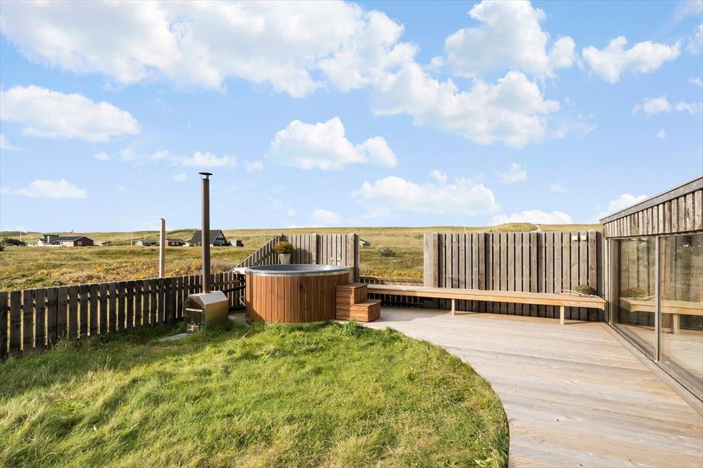 Udenfor breder klitlandskabet sig ud foran dig, og du kan næsten dufte havet, der ligger en kort gåtur væk. Sommerhuset har flere terrasser, men det er særligt den vestvendte terrasse med det opvarmede vildmarksbad, som bliver omdrejningspunktet for mange feriedage. Her kan du læne dig tilbage i det varme vand, lytte til naturens lyde og lade blikket glide hen over det naturskønne landskab. Når solen skinner, kan du slappe af på terrassen, hvor der altid er en hyggelig krog med læ – og på køligere dage er det helt vidunderligt at sidde i det opvarmede bad under en klar stjernehimmel. I haven er der masser af plads til både leg og afslapning, så børn kan løbe frit omkring, mens de voksne nyder freden og roen.