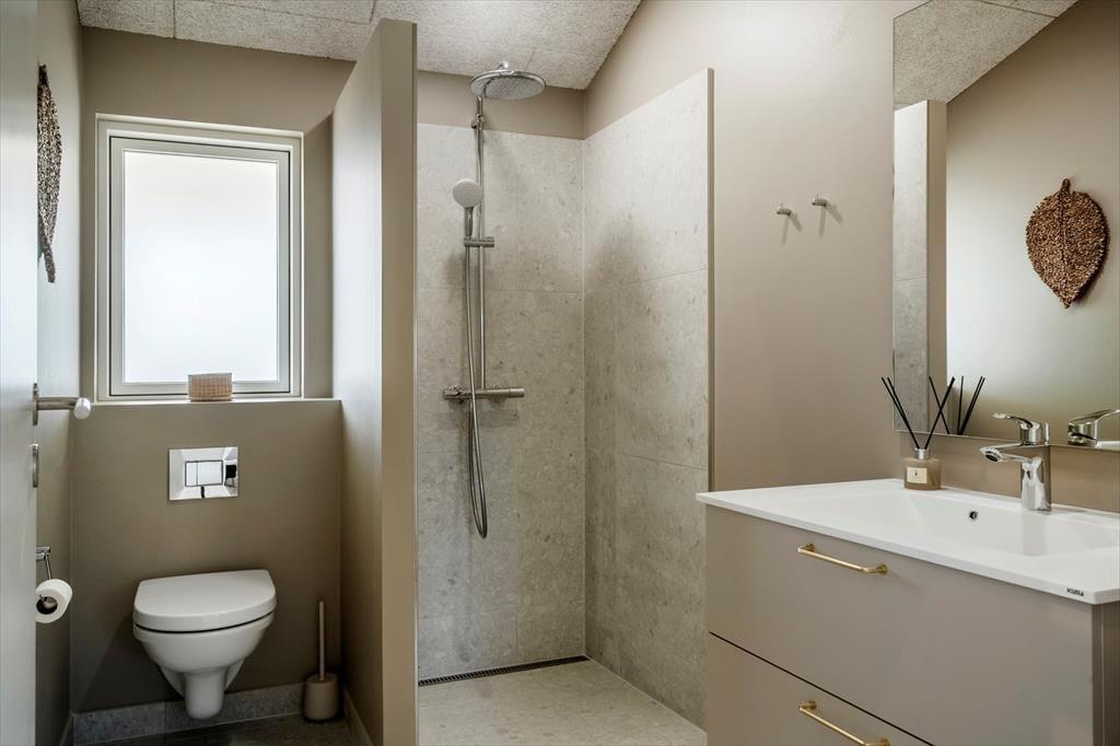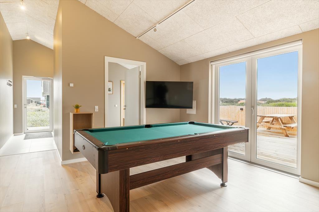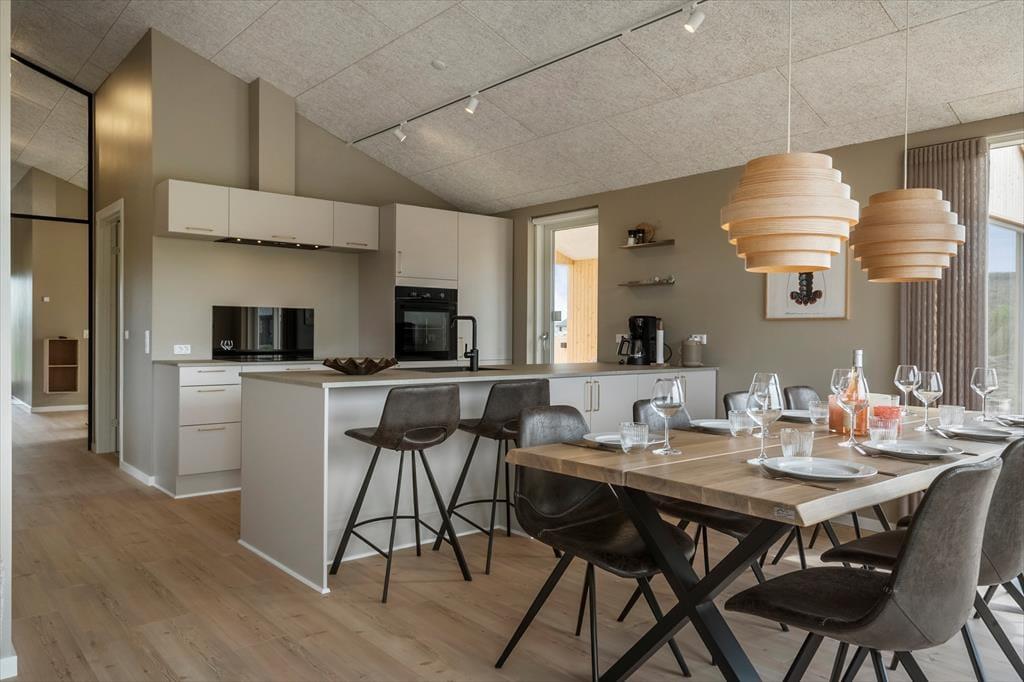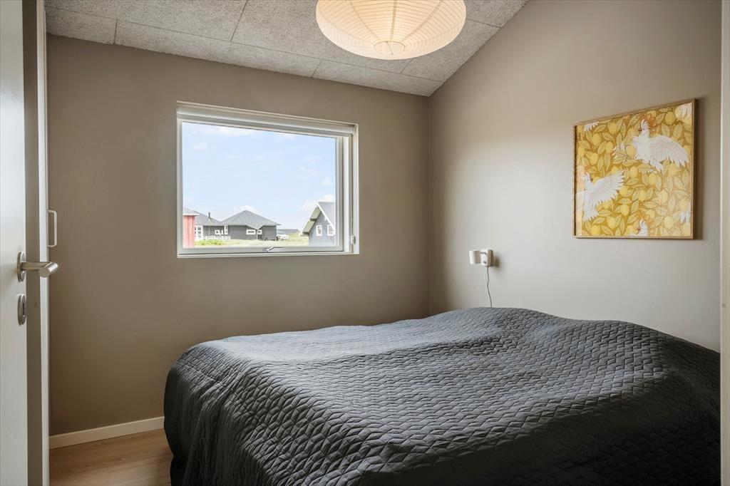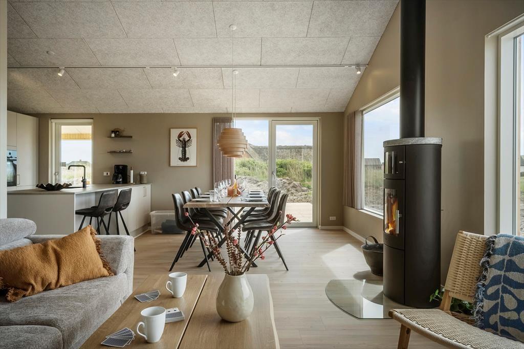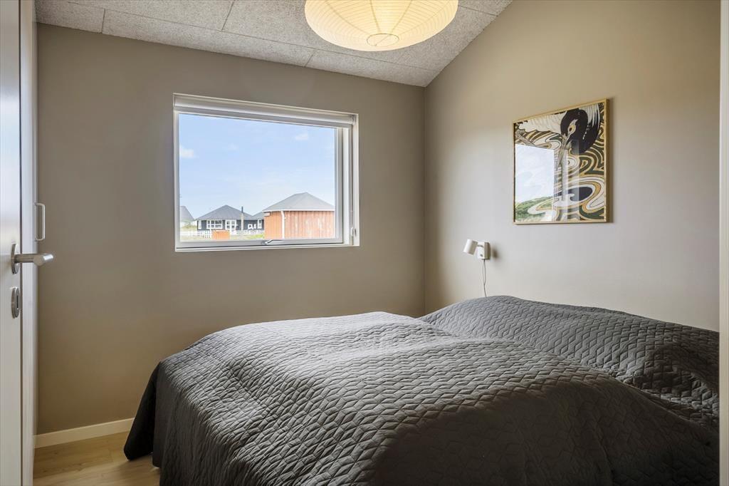 Sommerhusets moderne indretning skaber en lys og indbydende atmosfære, der straks får dig til at føle dig hjemme. Stue og køkken er elegant integreret og danner rammen om hyggelige stunder med familien eller vennerne. Forestil dig at samle hele selskabet til brætspil, madlavning eller en god film foran fjernsynet, mens solen skinner ind gennem de store vinduespartier. Sommerhusets soveværelser er ligeledes velindrettede, og med deres komfortable senge sikrer de en god nats søvn efter en dag fyldt med oplevelser. Badeværelset har et stilrent design og indbyder til afslapning – måske efter en tur langs stranden eller i de nærliggende klitter.