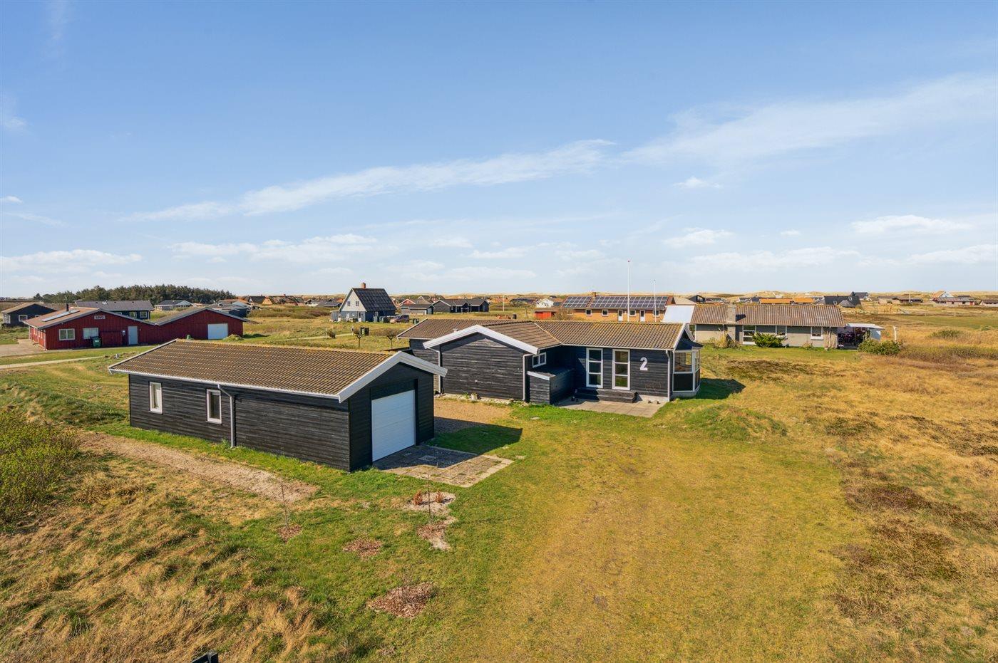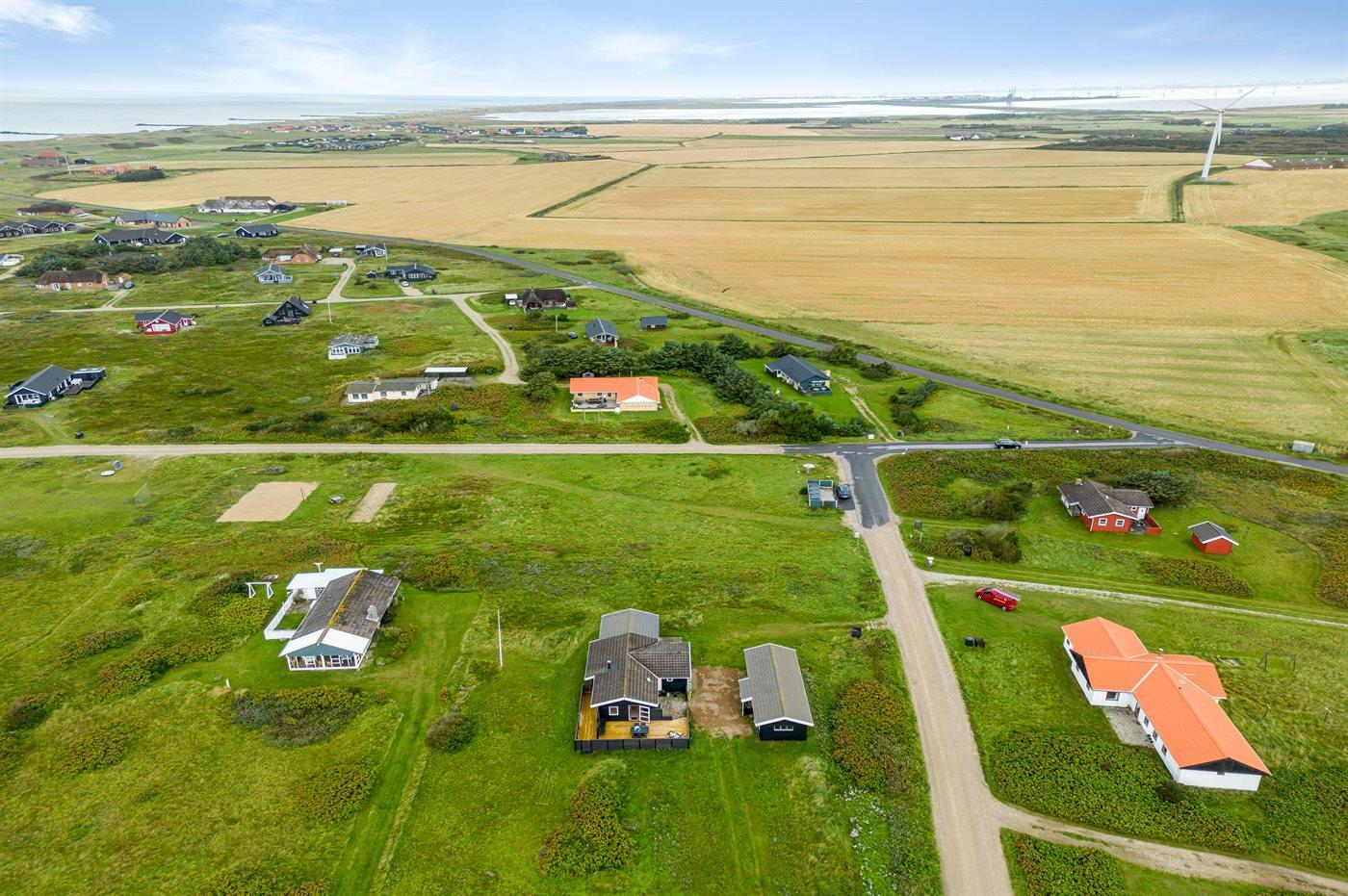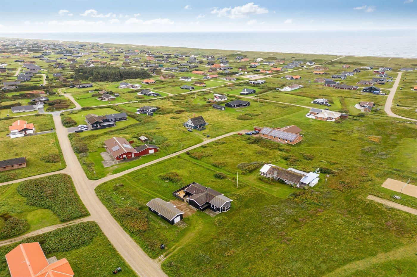 Ferieboligen er beliggende på en 2567 m² stor klitgrund med kort afstand til havet. Nærmeste forretning er beliggende i en afstand af 1000 m. Ferieboligen har et stort, åbent terrasseareal med god mulighed for at finde læ og skygge. Der findes også et depotrum samt parkering ved ferieboligen.