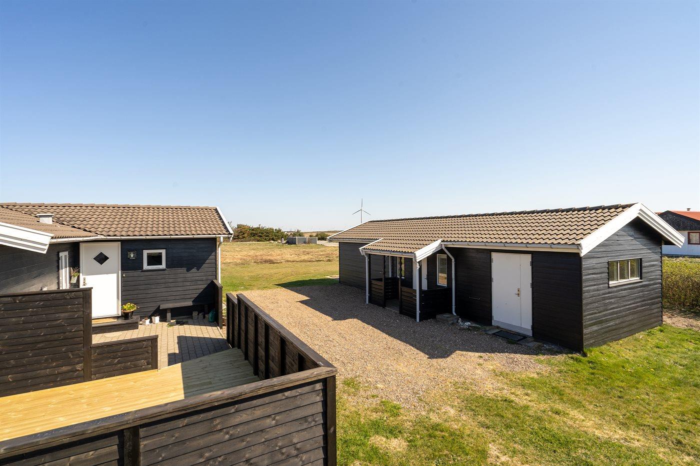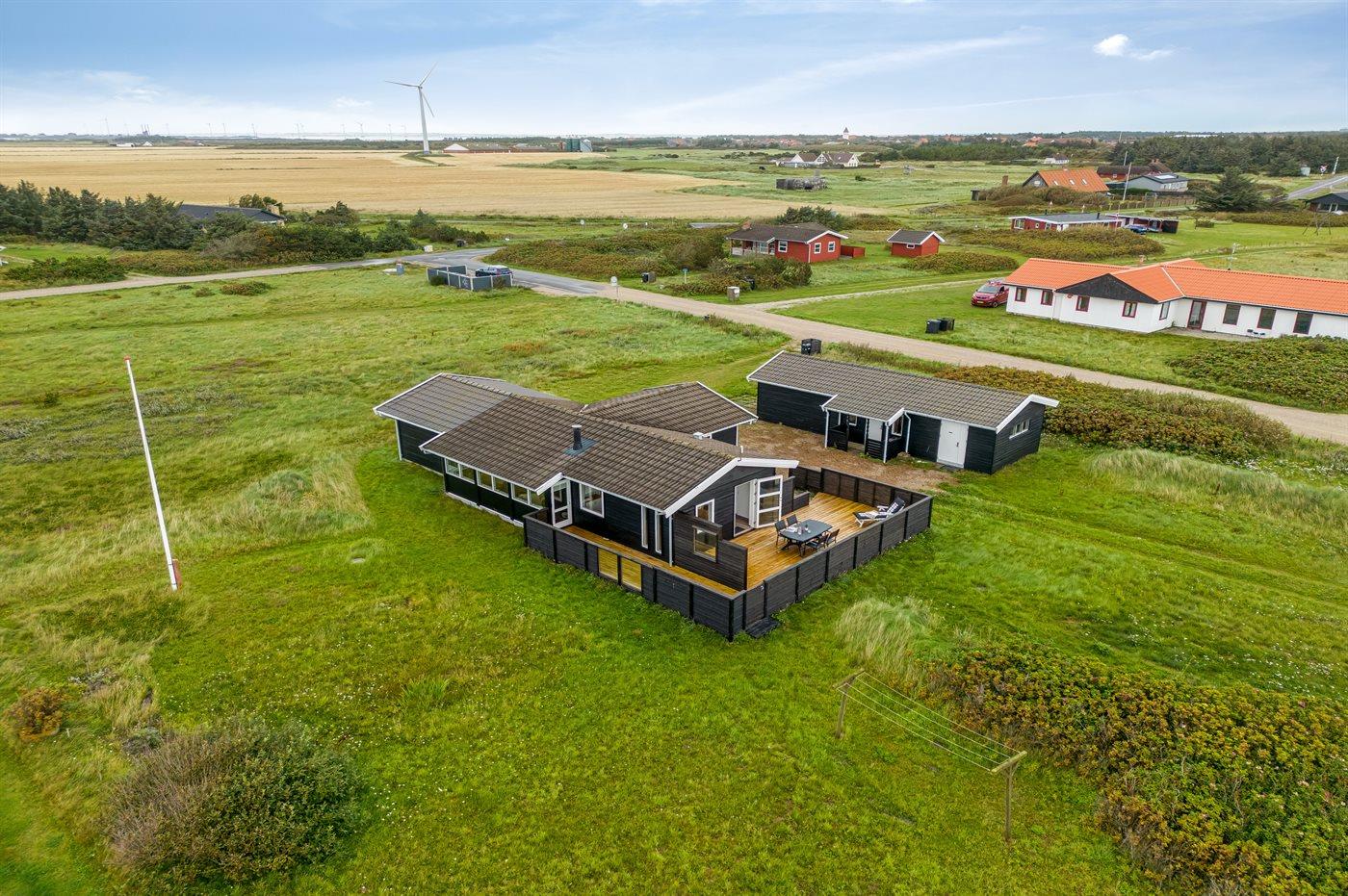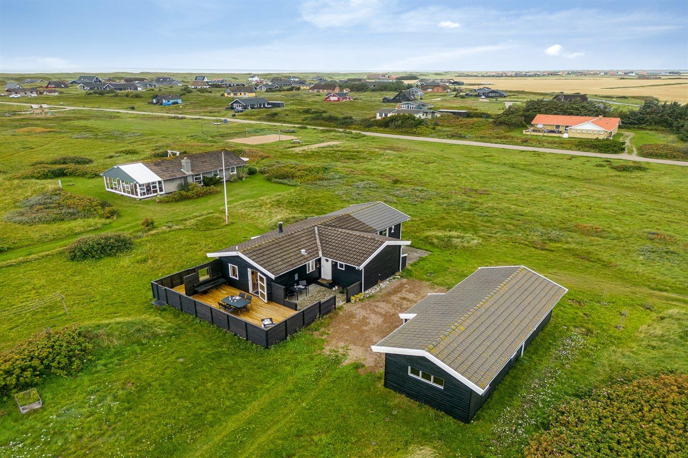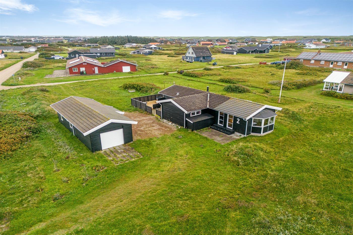 Ferieboligen er beliggende på en 2567 m² stor klitgrund med kort afstand til havet. Nærmeste forretning er beliggende i en afstand af 1000 m. Ferieboligen har et stort, åbent terrasseareal med god mulighed for at finde læ og skygge. Der findes også et depotrum samt parkering ved ferieboligen.