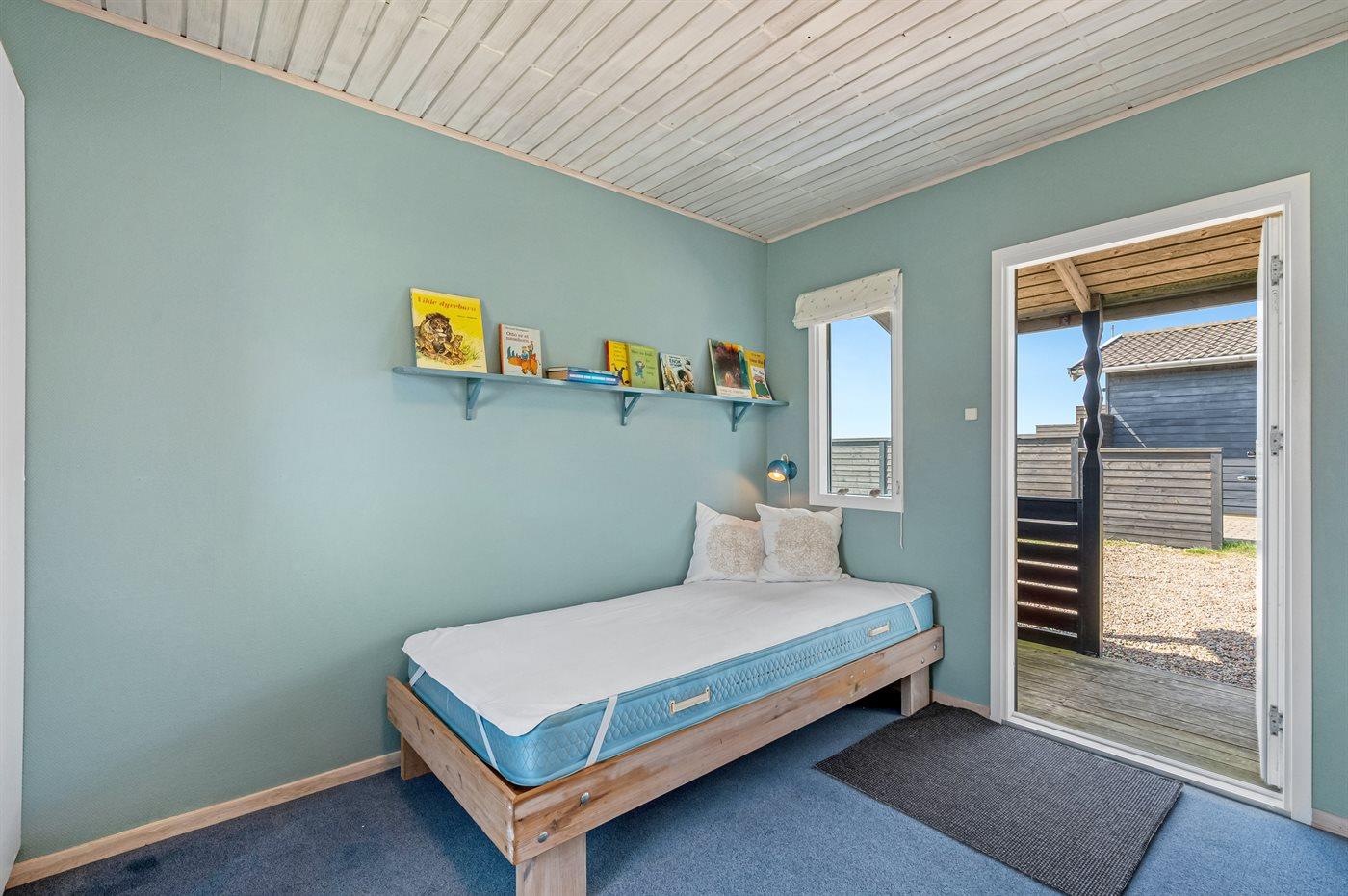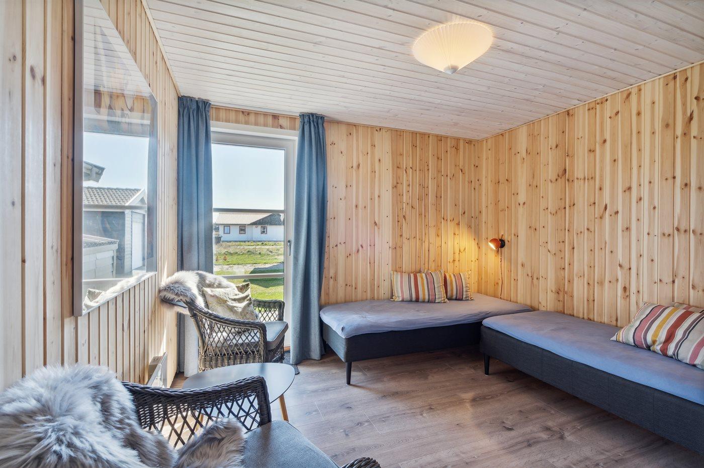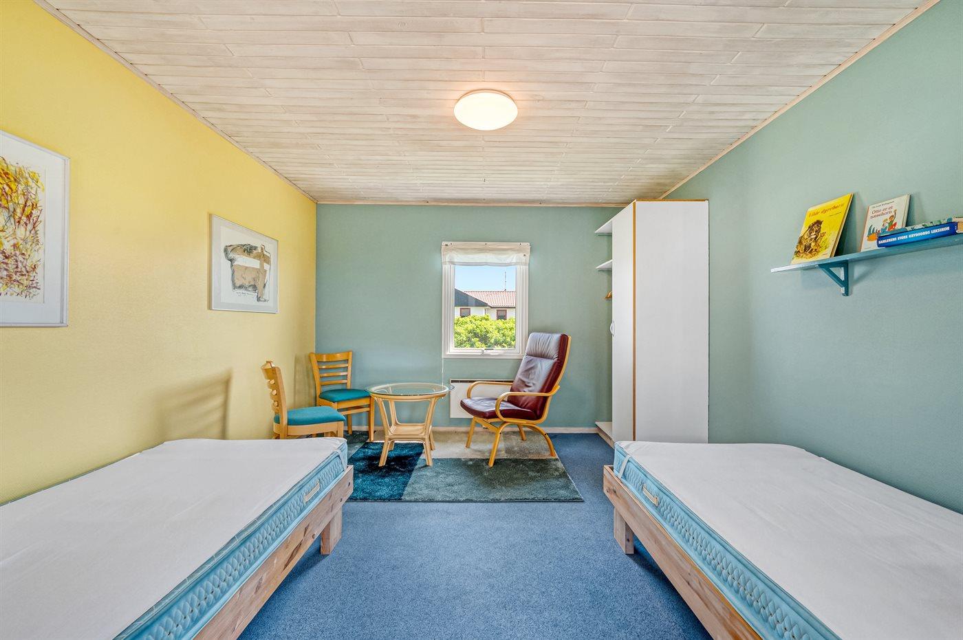 Der findes 3 soveværelser, med 6 sovepladser i enkeltsenge, og herudover et værelse med en sovesofa (dobbelt).