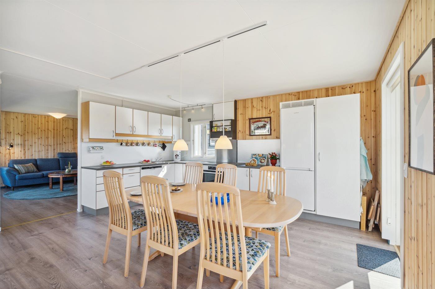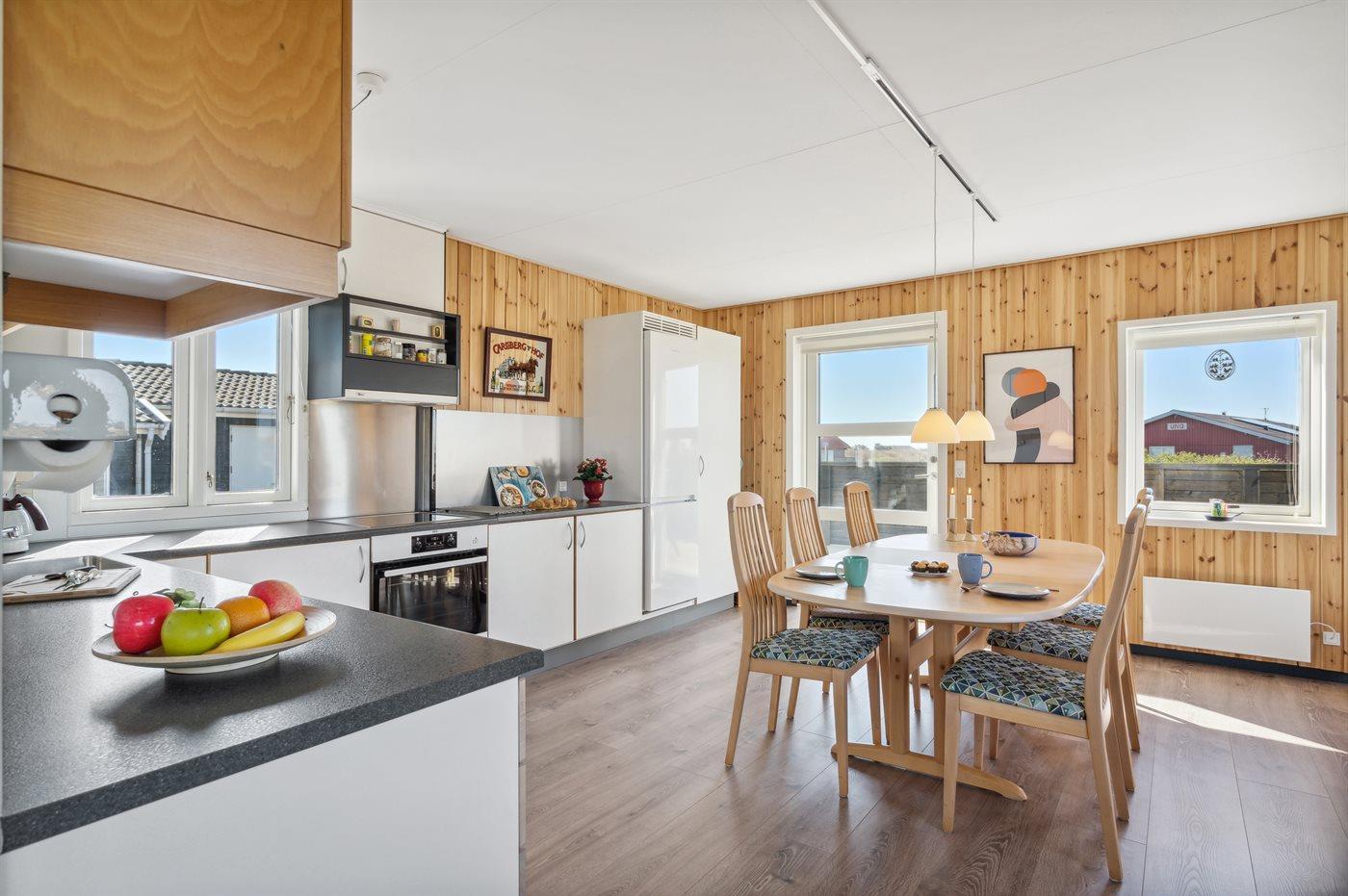 Huset, som egner sig til 6 personer, er på 127 m², bygget i 1975 og renoveret i 2022. Ferieboligen er udstyret med skabe i alle værelser, 1 energivenlig luft til luft varmepumpe samt brændeovn og stort spisekøkken med køle-/frysekab, Det er ikke tilladt at