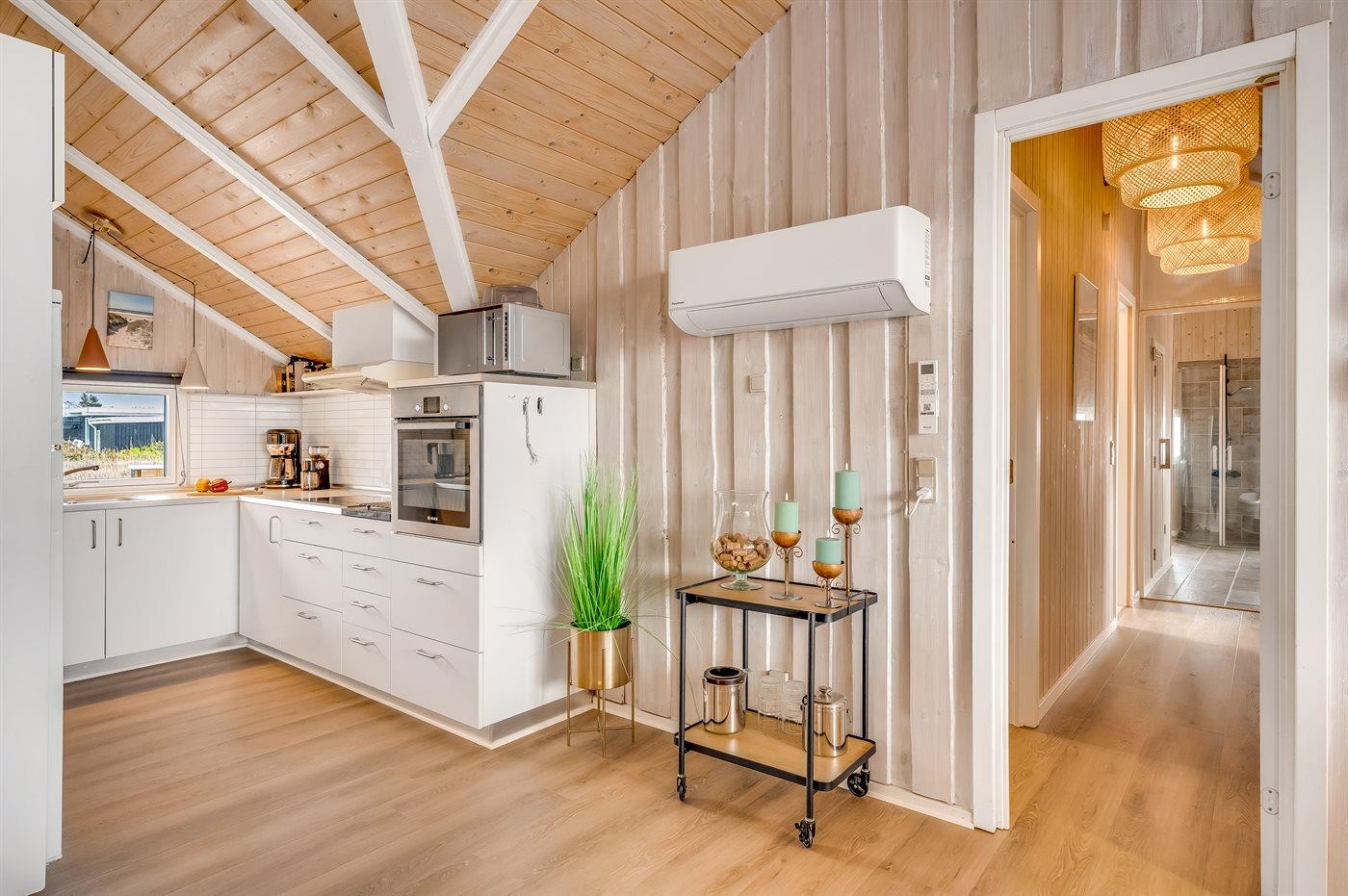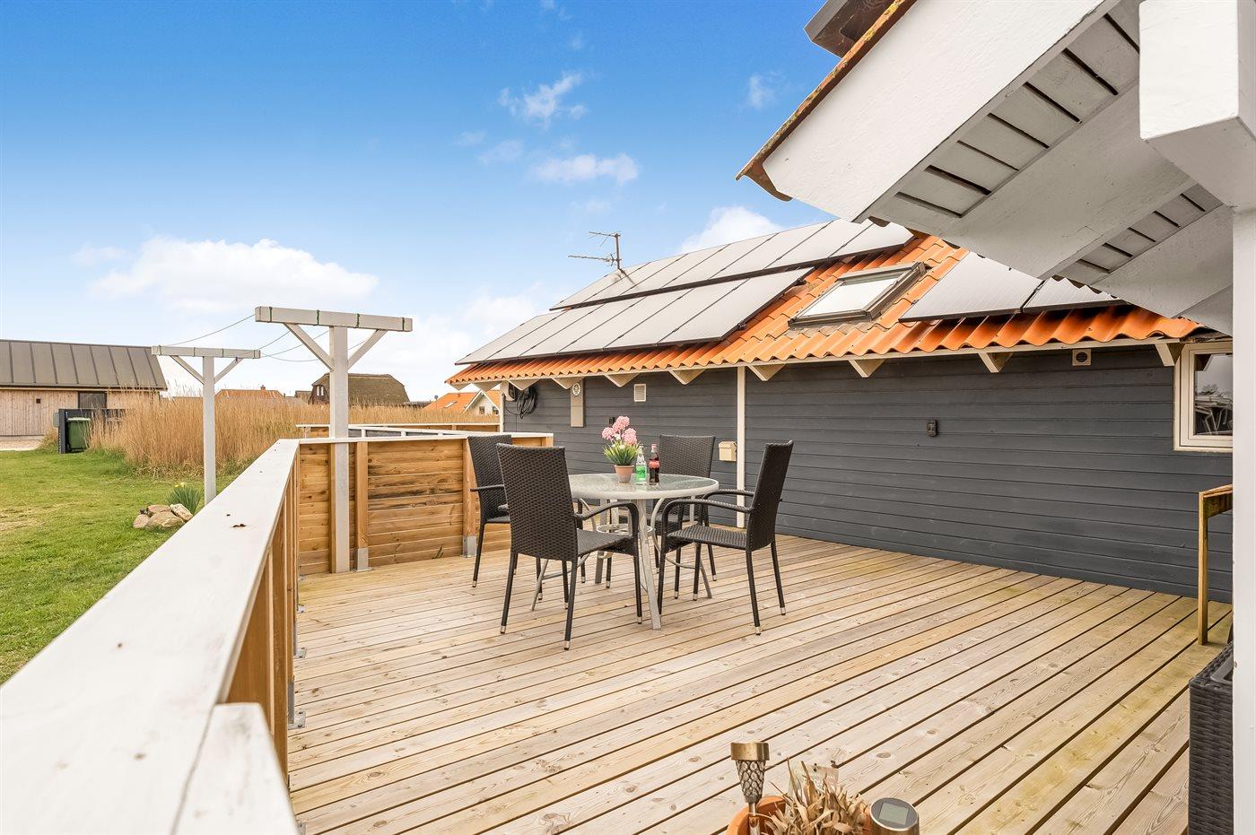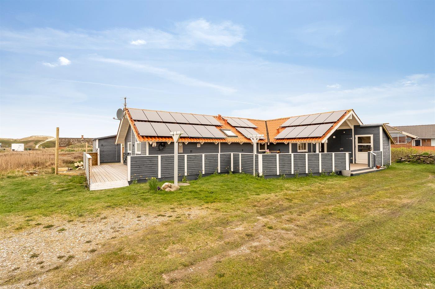 Dette dejlige sommerhus, hvor der udelukkende anvendes grøn energi, er bygget 1992 og løbende renoveret, senest i 2012, ligger på en stor naturgrund, kun 150 m fra stranden. Til huset hører såvel åbent som overdækket terrasseareal med havemøbler. Indvendigt er der nye trægulve. Hvidmalede trævægge og lofter. Stort, lækkert sparum med 4- pers. spa, bruseniche og direkte adgang til husets sauna. Skønt badeværelse med opvarmet flisegulv og bruseniche. Gæstetoilet med gulvvarme. Det veludstyrede køkken er kombineret med spise-/opholdsstuen og indeholder bl.a. mikrobølgeovn, opvaskemaskine og fryser. Opholdsstuen er indrettet med brændeovn, DVD-afspiller, TV med parabol (digital) og stereoanlæg med CD-afspiller. Husets sovepladser fordeler sig på 4 rummelige værelser, 3 med dobbeltseng og 1 med 2 køjesenge. Til de mindste feriegæster er der barneseng, høj barnestol og sandkasse. Desuden gratis, trådløs internetforbindelse (computer skal medbringes), vaskemaskine og tørretumbler til rådighed. Et skønt sommerhus uanset årstiden.