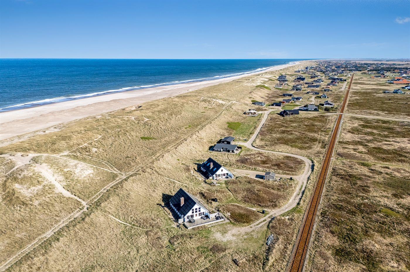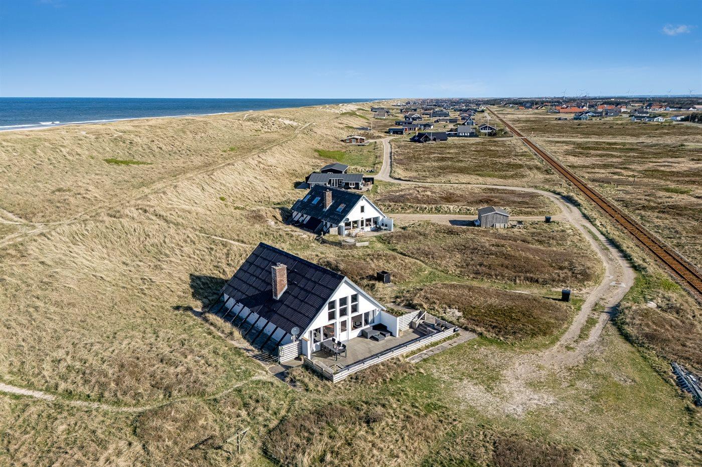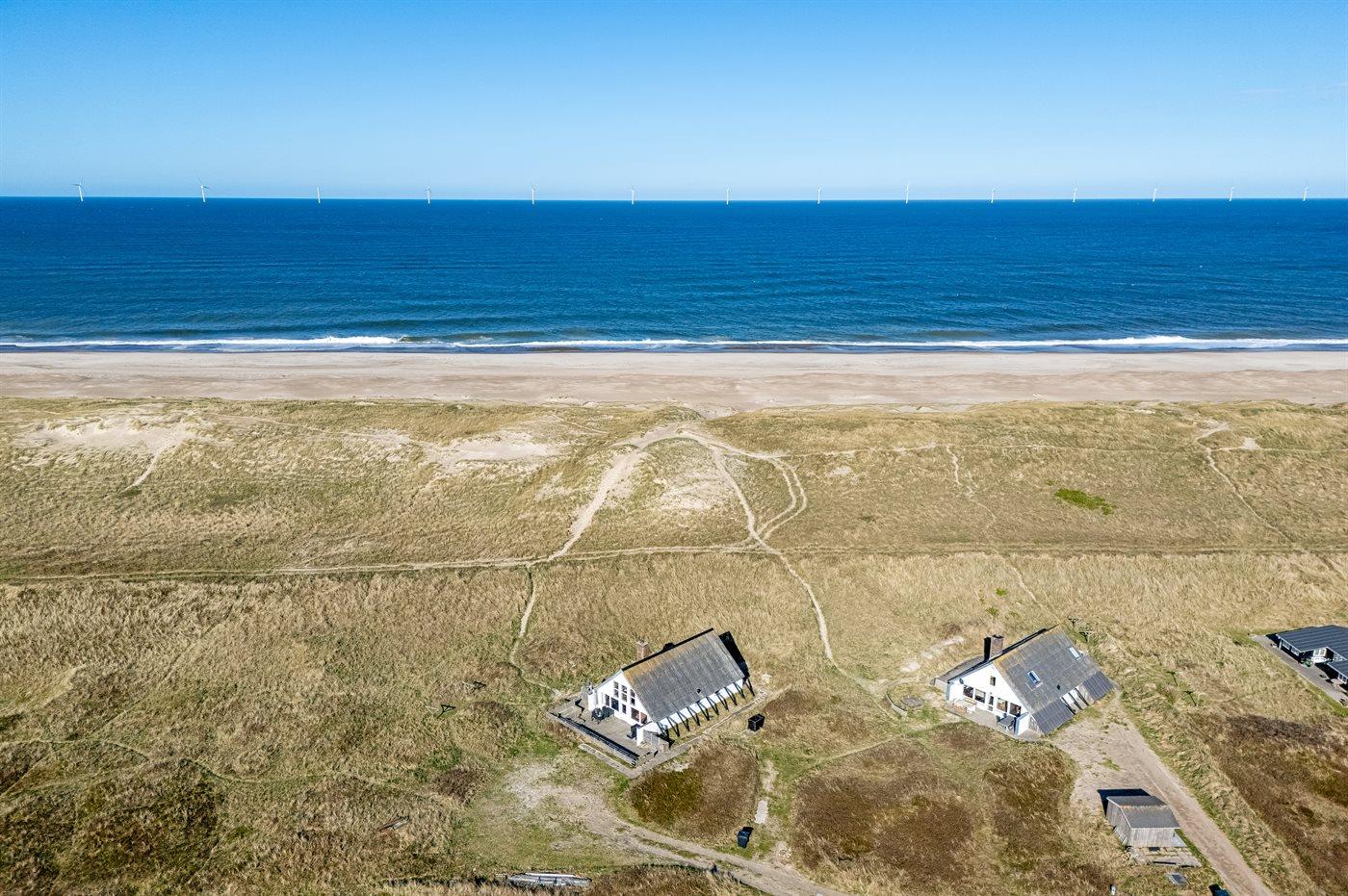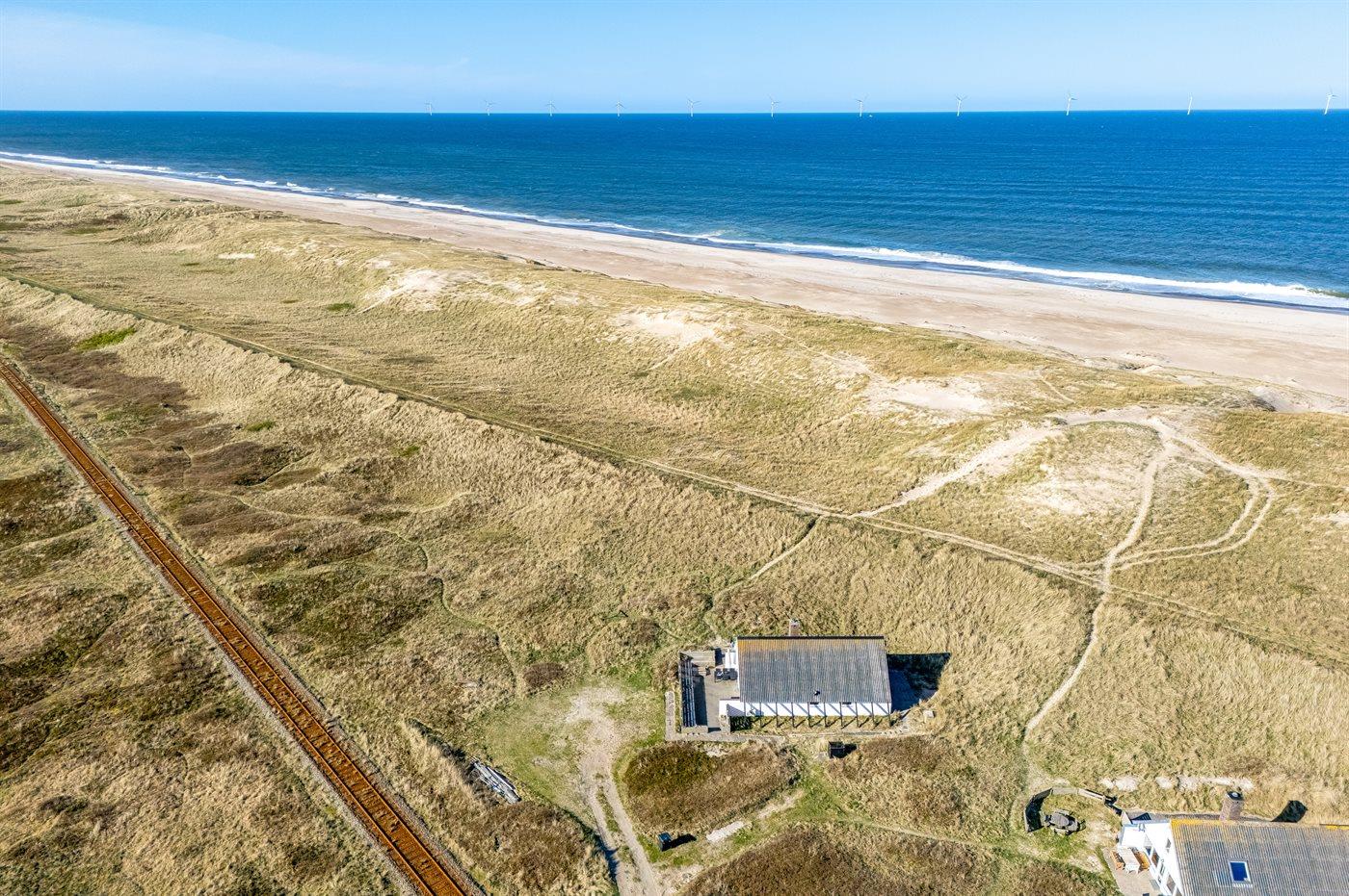 Enestående beliggenhed i forreste række med grund helt til havet. Huset ligger med kun 75 m til Vesterhavets bølger. Hør havets brusen, så snart du træder ud af døren og oplev en dejlig bilfri, bred strand, der ikke er et fluepapir. Her er dejligt, hvad enten man er 2 eller 6 personer i huset.