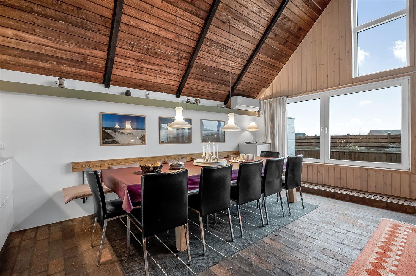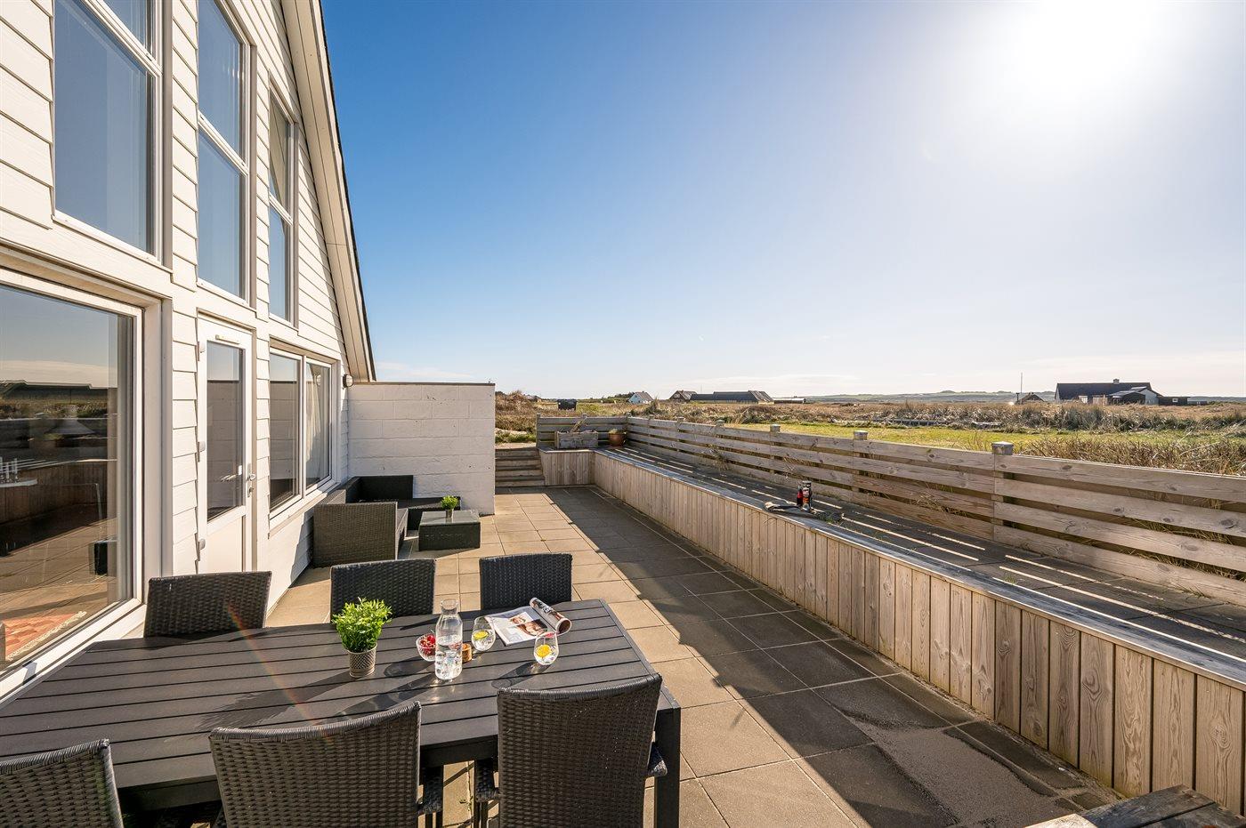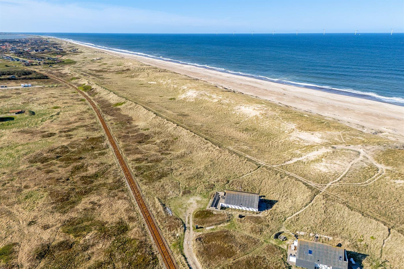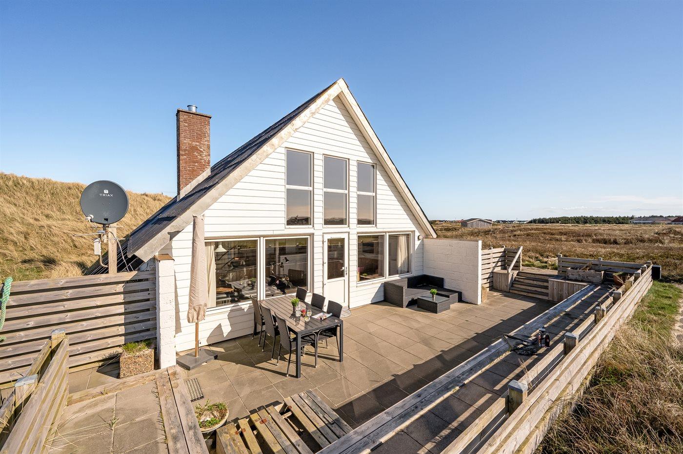 Enestående beliggenhed i forreste række med grund helt til havet. Huset ligger med kun 75 m til Vesterhavets bølger. Hør havets brusen, så snart du træder ud af døren og oplev en dejlig bilfri, bred strand, der ikke er et fluepapir. Her er dejligt, hvad enten man er 2 eller 6 personer i huset.