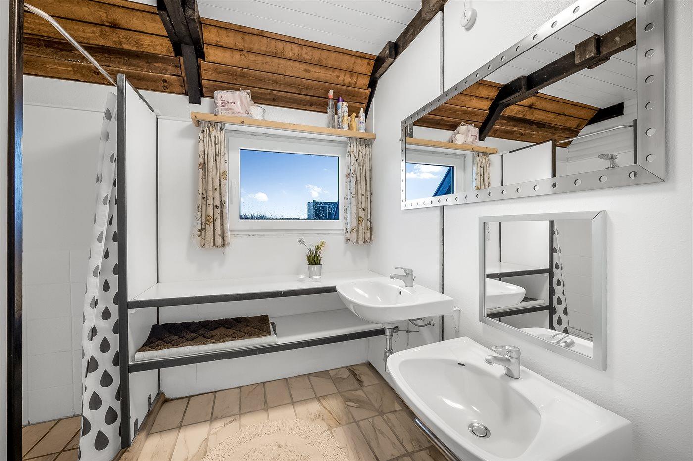 Der er 1 badeværelse med bruseniche og 2 toiletter, heraf 1 gæstetoilet.