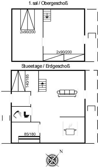 Der er i alt 3 soveværelser. Sovepladserne fordeler sig på: 4 sovepladser i dobbeltsenge. 2 sovepladser i køjeseng. Derudover er der 1 stk. barneseng.