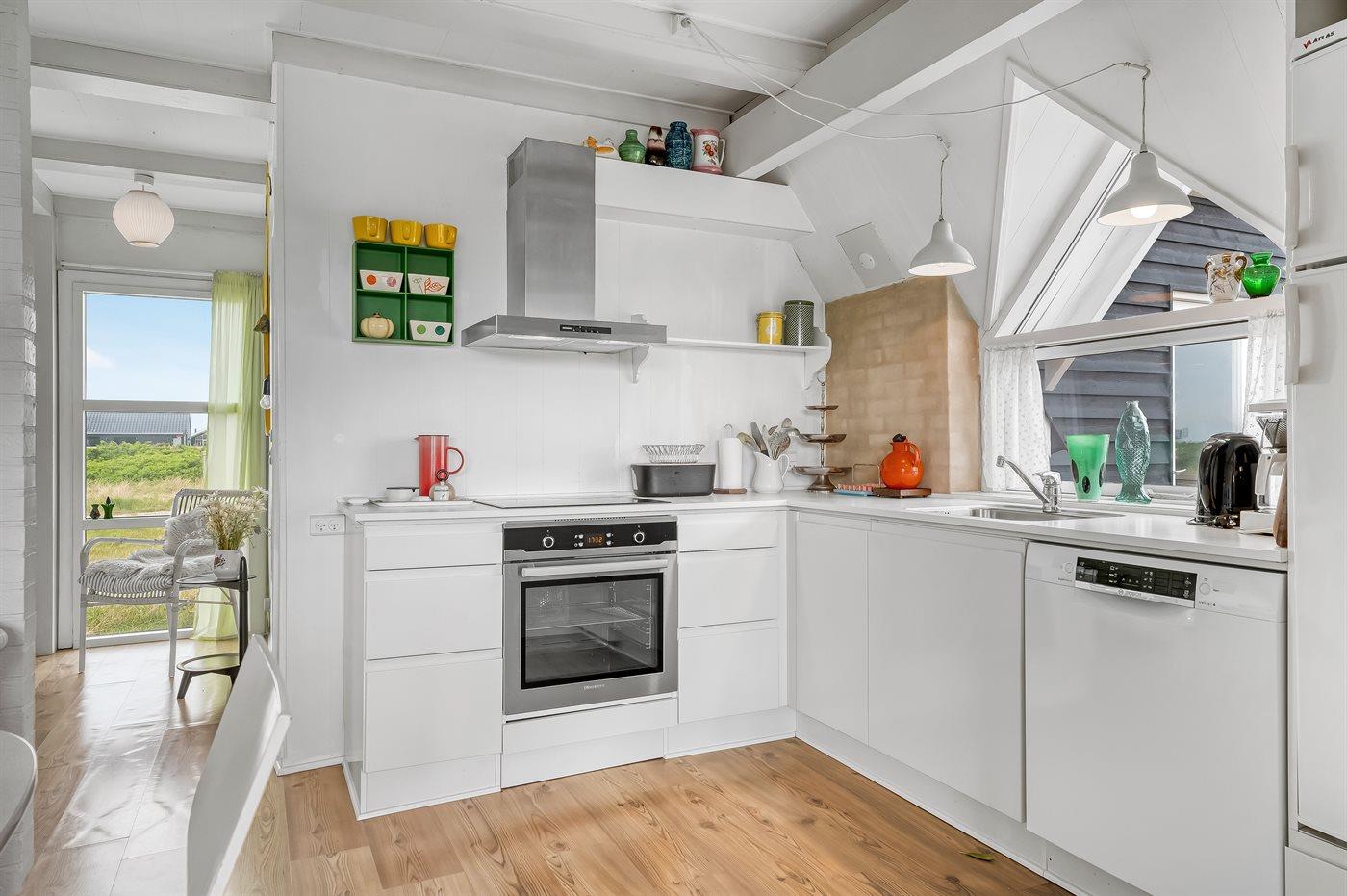 Køkkenet er udstyret med 1 køleskab. Der er 4 induktionskogeplader, varmluftovn samt opvaskemaskine.