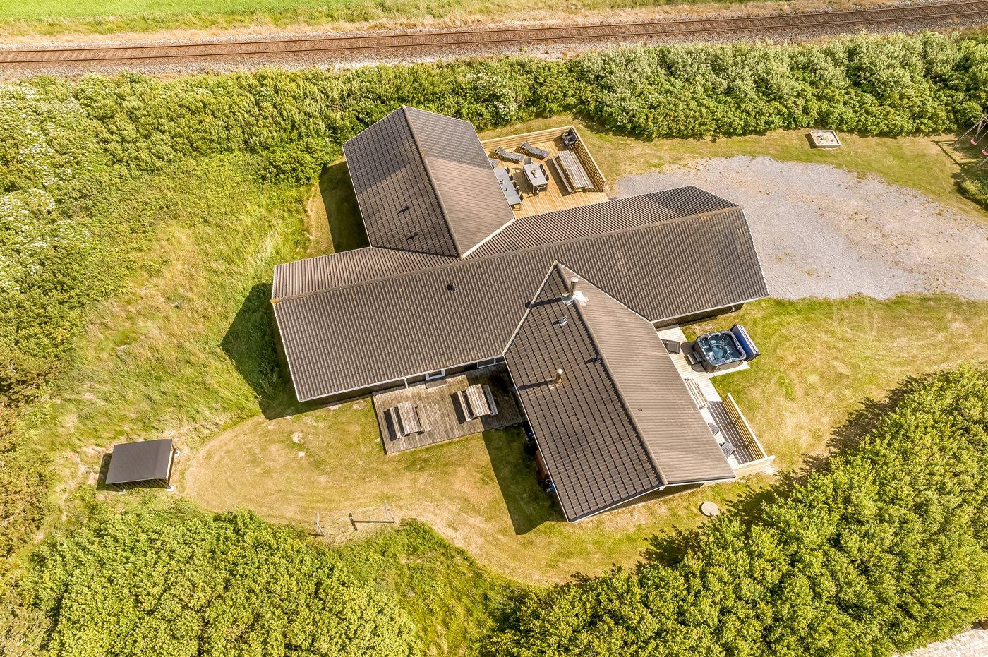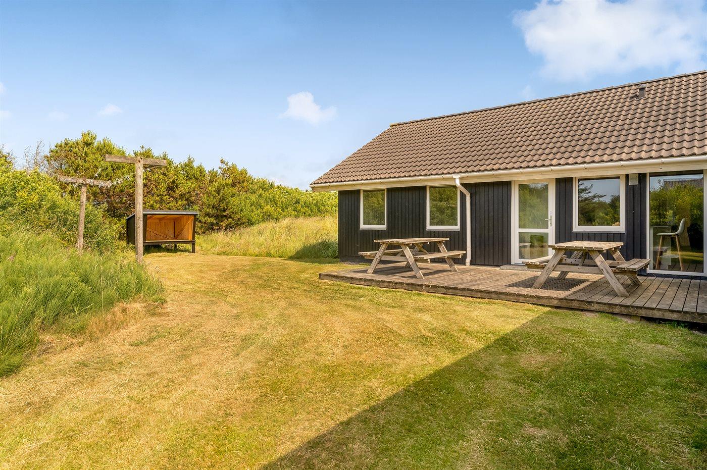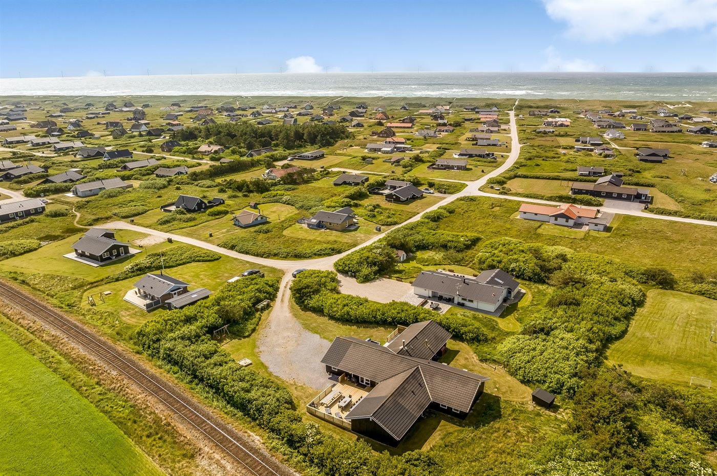 Ferieboligen er beliggende på en 2538 m² stor naturgrund. Der er 500 m til havet. Nærmeste forretning er beliggende i en afstand af 1500 m. Der er en golfbane i en afstand af 9700 m. Til ferieboligen hører åbent terrasseareal. Gynge. Sandkasse. Bålsted. Shelter. Grill til rådighed. Der er installeret stik til opladning af elbil. Type 2 stik. Med 11 kW ladeeffekt. Parkering ved ferieboligen.