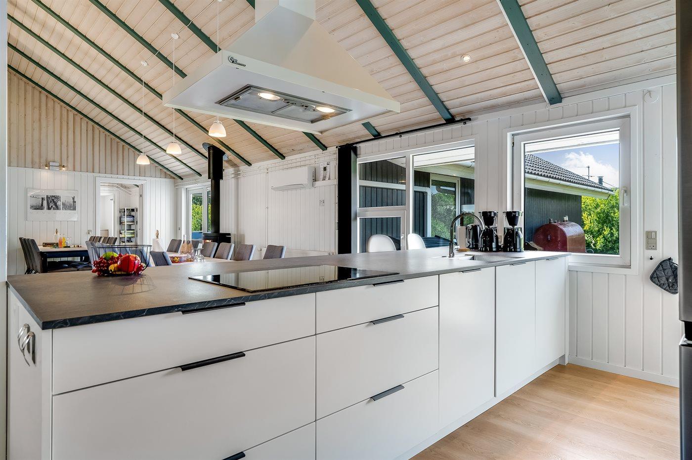 Køkkenet er udstyret med 2 køleskabe. Der er 4 induktionskogeplader, 2 varmluftovne, mikrobølgeovn samt 2 opvaskemaskiner.
